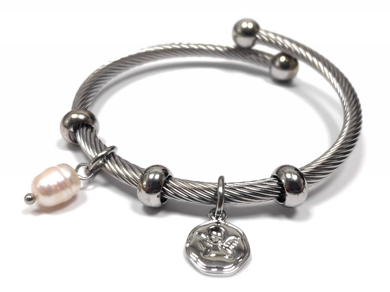 Βραχιόλι Ατσάλι 316L, σταθερό με μαργαριτάρι σε χρώμα Ασημί