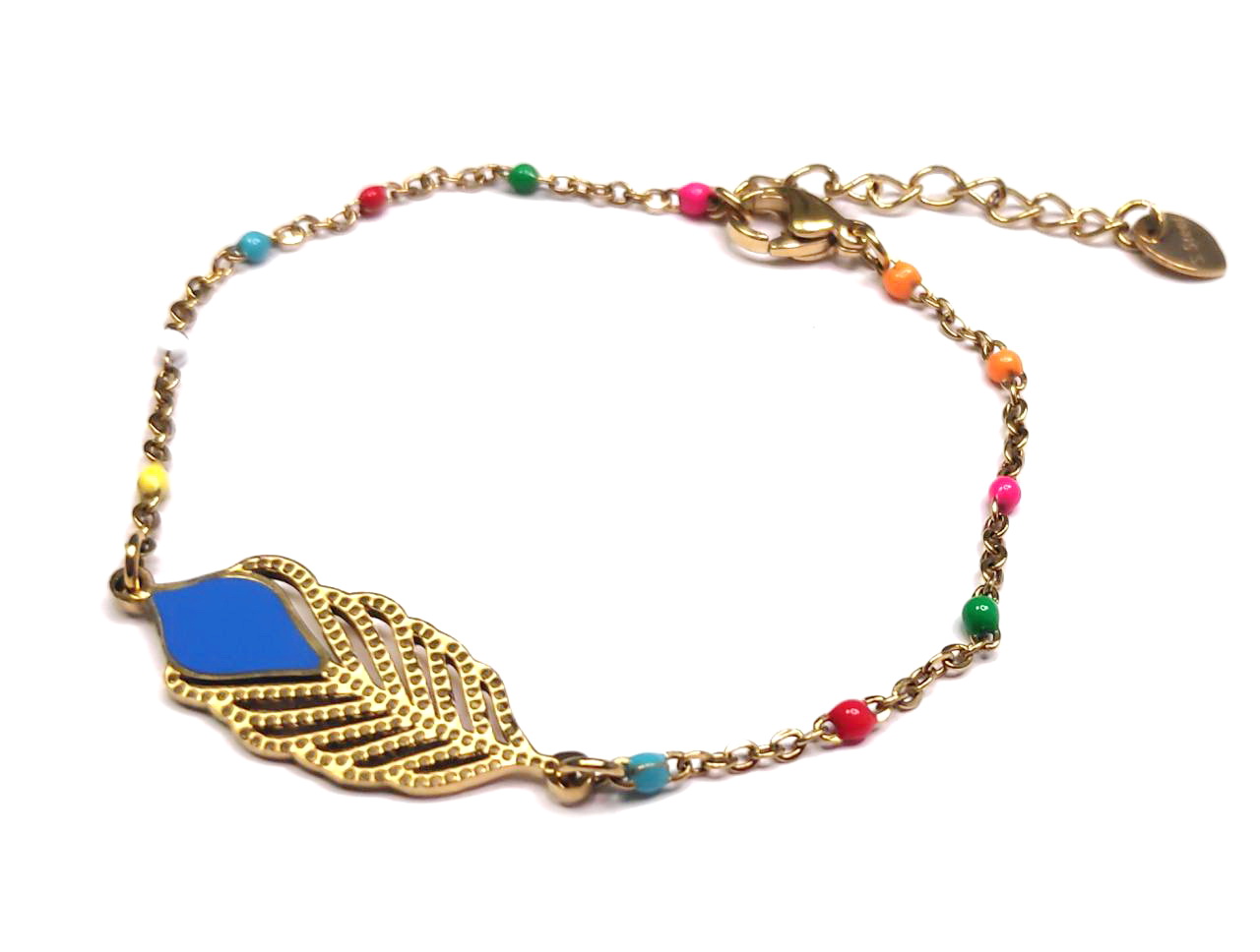 Βραχιόλι Πέτρα 316L, αλυσίδα με φτερό και πολύχρωμες πέτρες σε χρώμα Χρυσαφί