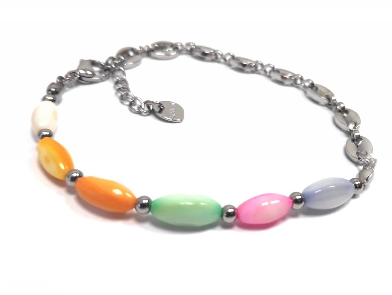 Βραχιόλι Πέτρα 316L, αλυσίδα με πολύχρωμα μαργαριτάρια σε χρώμα Ασημί
