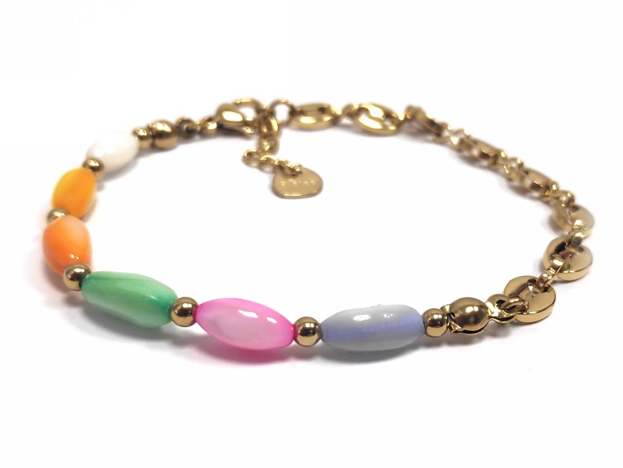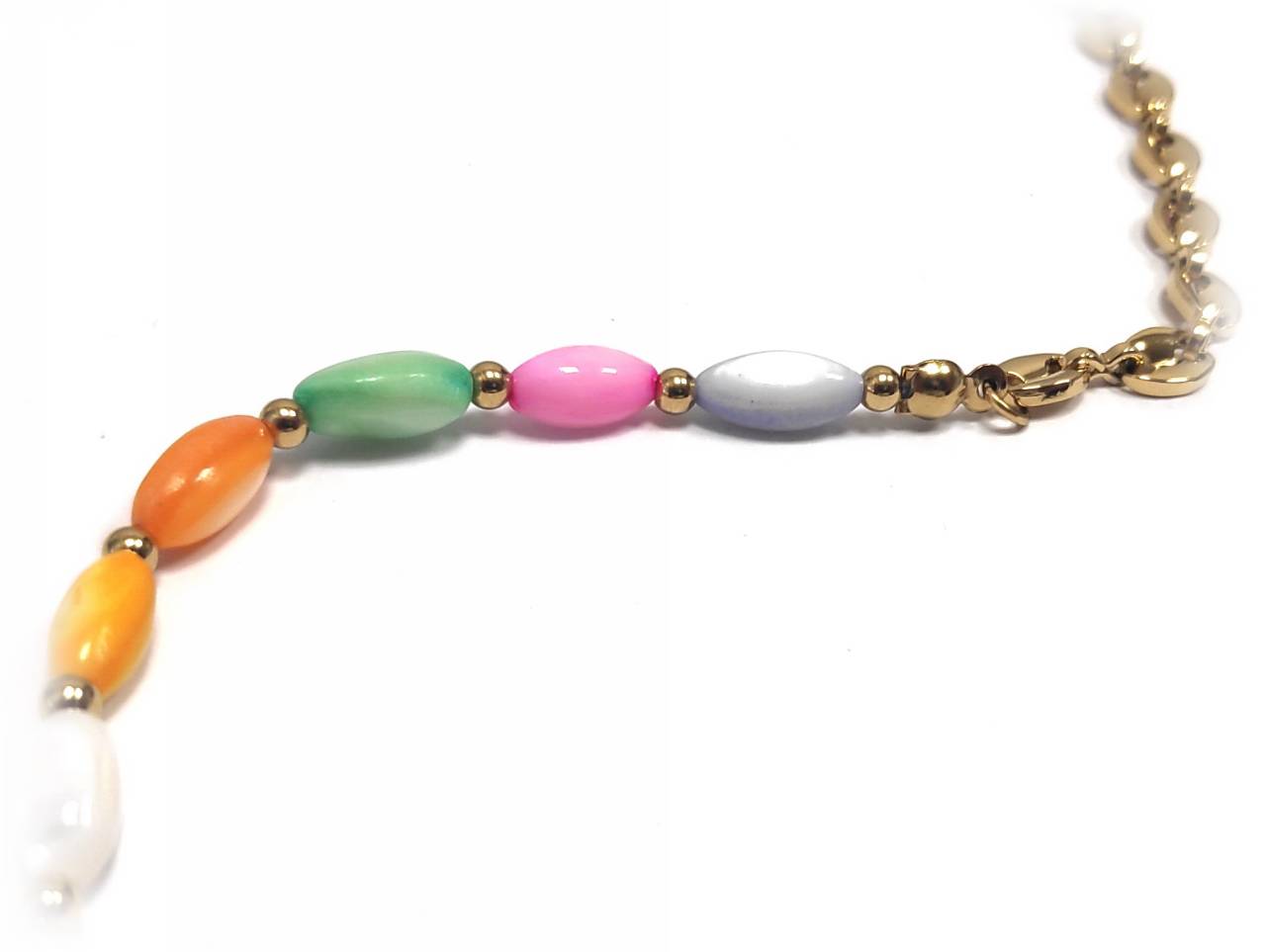 Βραχιόλι Πέτρα 316L, αλυσίδα με πολύχρωμα μαργαριτάρια σε χρώμα Χρυσαφί