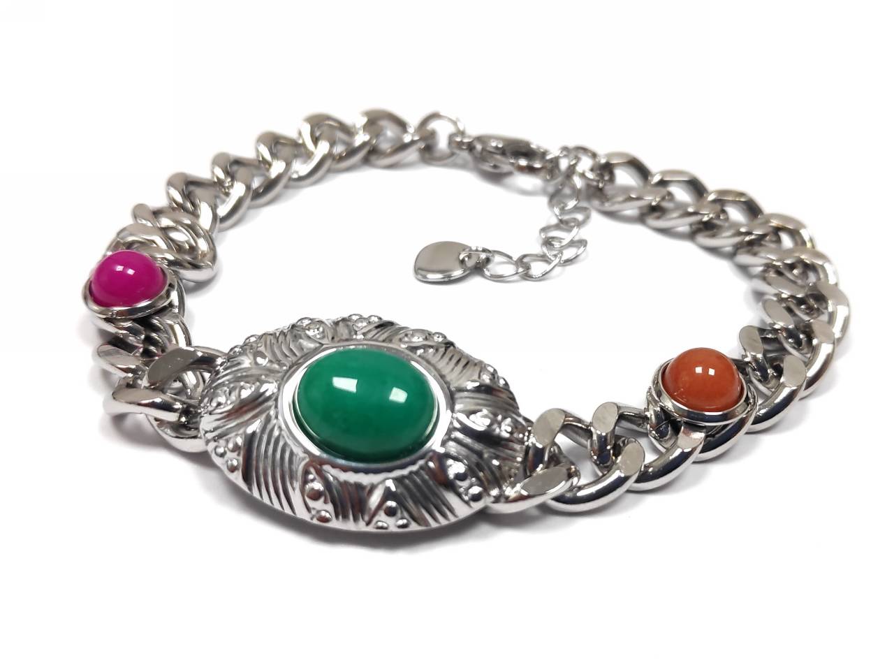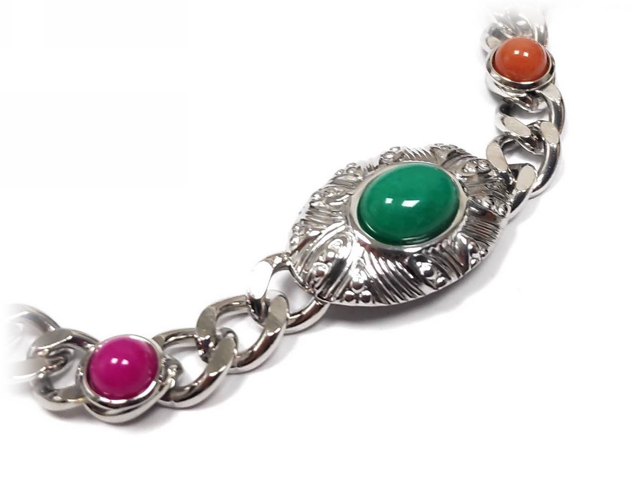 Βραχιόλι Πέτρα 316L, αλυσίδα με πολύχρωμες πέτρες σε χρώμα Ασημί