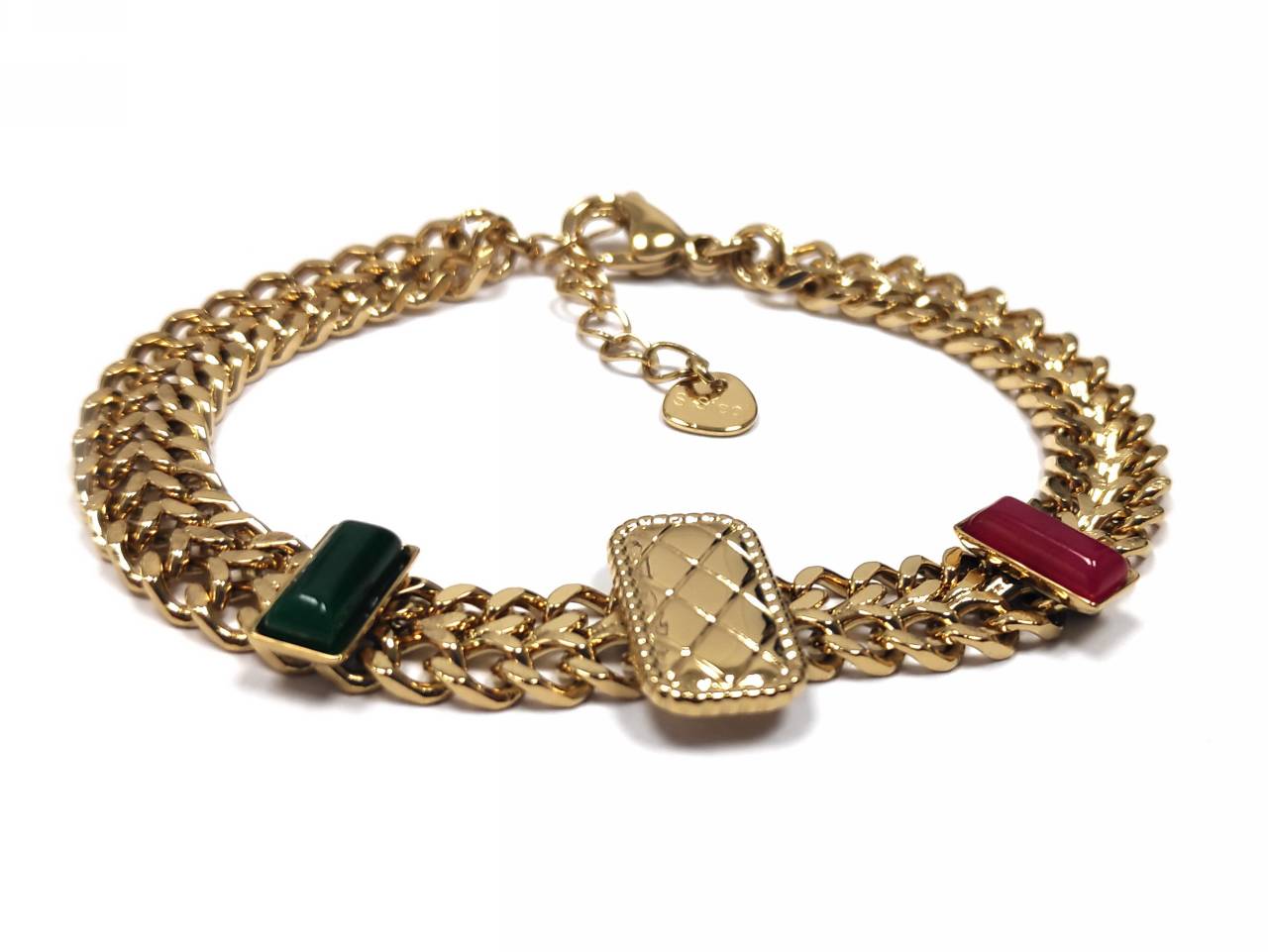 Βραχιόλι Πέτρα 316L, αλυσίδα με πολύχρωμες πέτρες σε χρώμα Χρυσαφί
