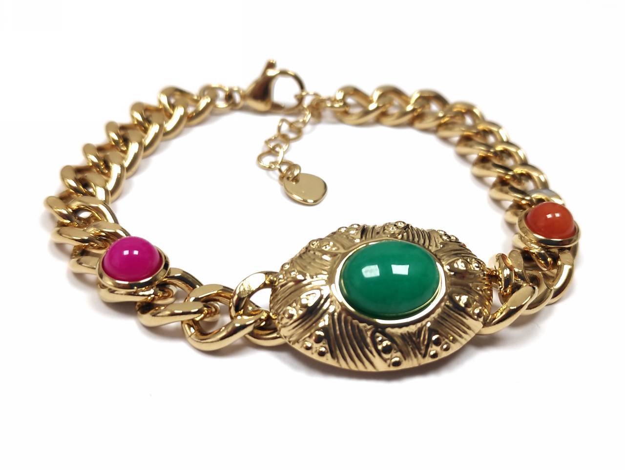 Βραχιόλι Πέτρα 316L, αλυσίδα με πολύχρωμες πέτρες σε χρώμα Χρυσαφί