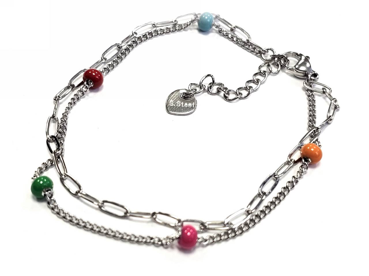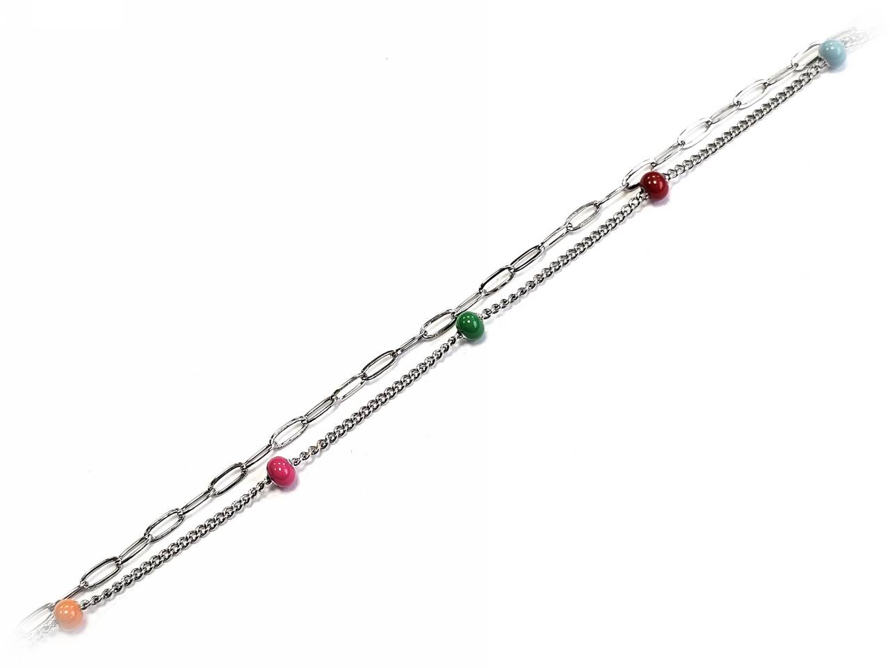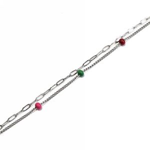 Βραχιόλι Πέτρα ατσάλι 316L, διπλή αλυσίδα με διάφορες πέτρες σε χρώμα Ασημί
