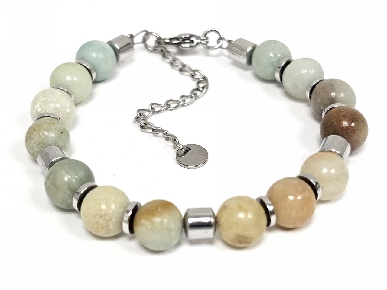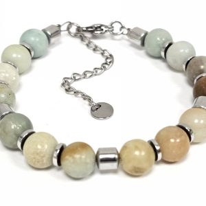 Βραχιόλι Πέτρα ατσάλι αλυσίδα με ημιπολύτιμες πέτρες και στοιχεία από αιματίτη σε χρώμα Ασημί