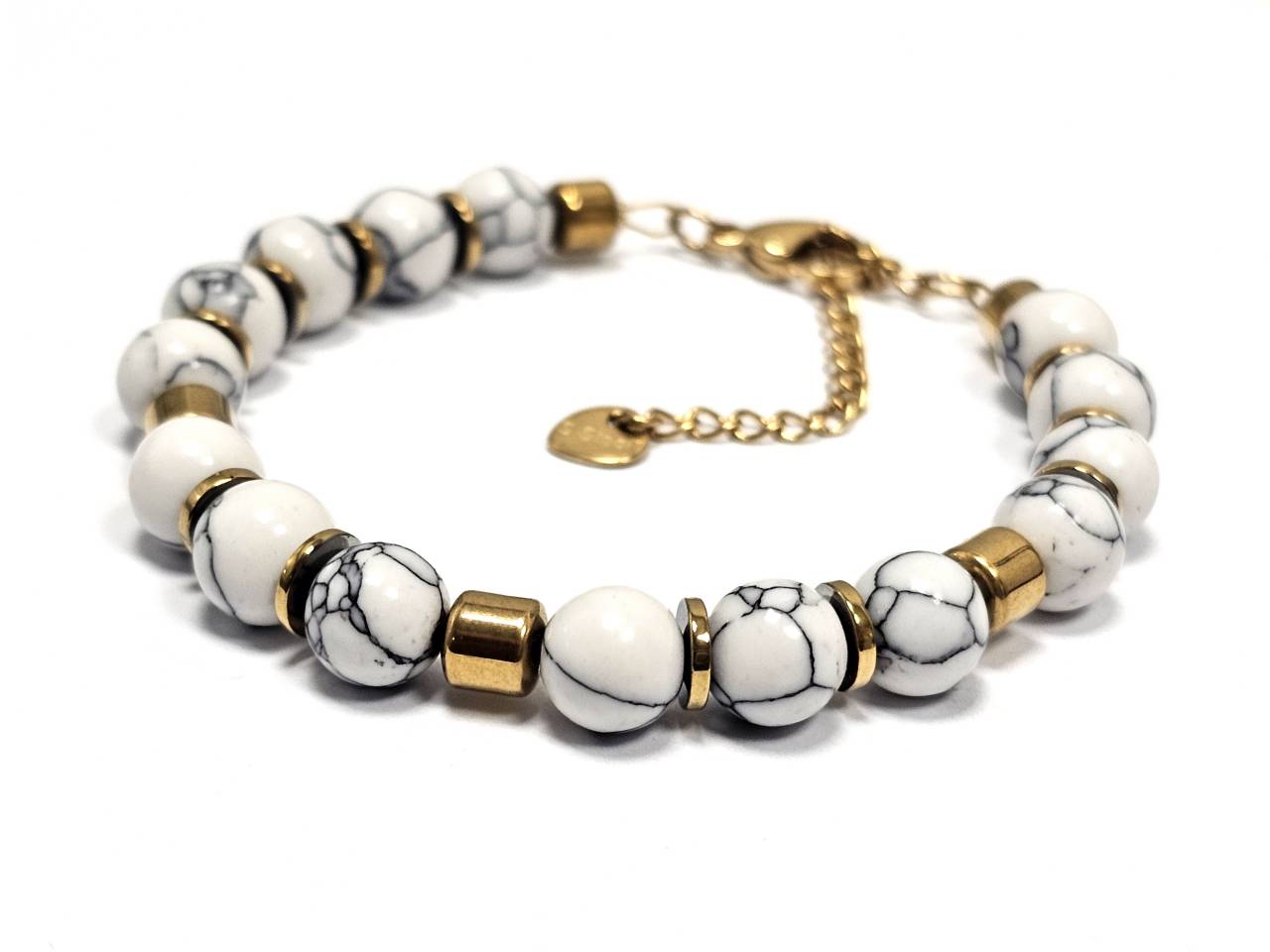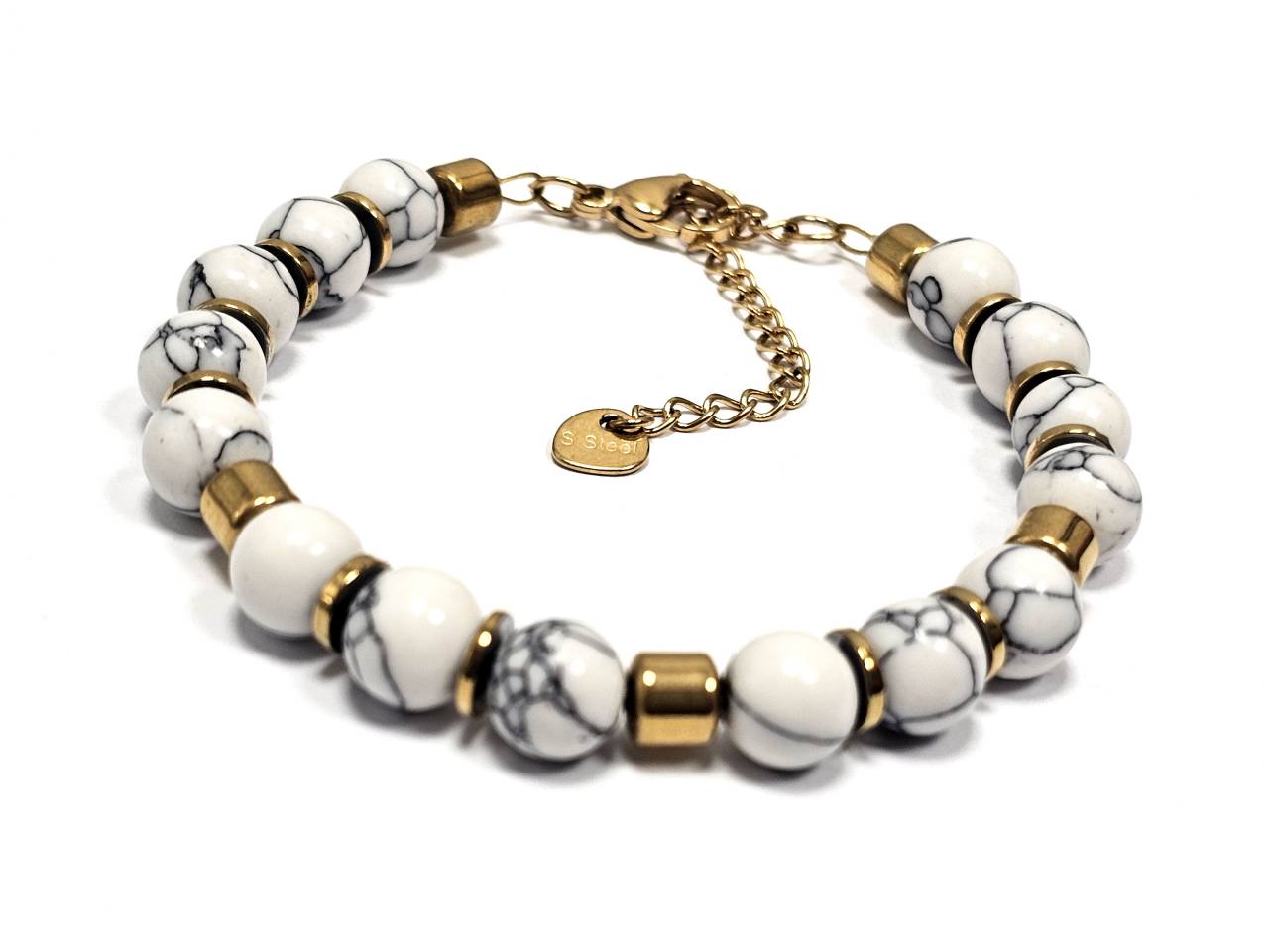 Βραχιόλι Πέτρα με ημιπολύτιμες πέτρες και στοιχεία από αιματίτη σε χρώμα Χρυσαφί