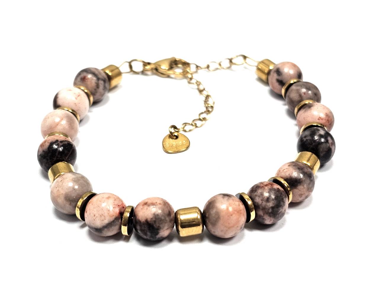 Βραχιόλι Πέτρα με ημιπολύτιμες πέτρες και στοιχεία από αιματίτη σε χρώμα Χρυσαφί