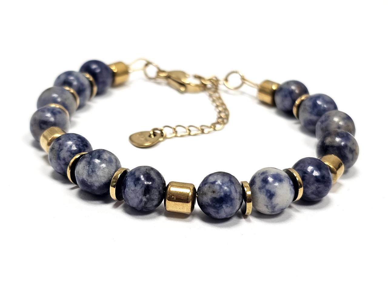 Βραχιόλι Πέτρα με ημιπολύτιμες πέτρες και στοιχεία από αιματίτη σε χρώμα Χρυσαφί