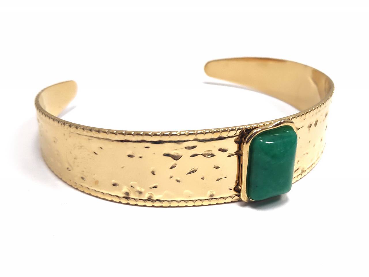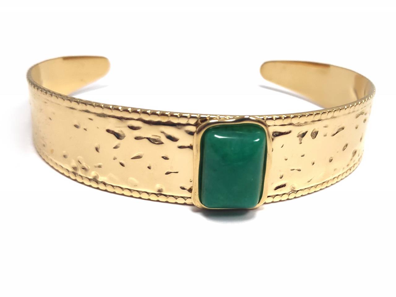 Βραχιόλι Πέτρα 316L, σταθερό με πράσινη πέτρα σε χρώμα Χρυσαφί