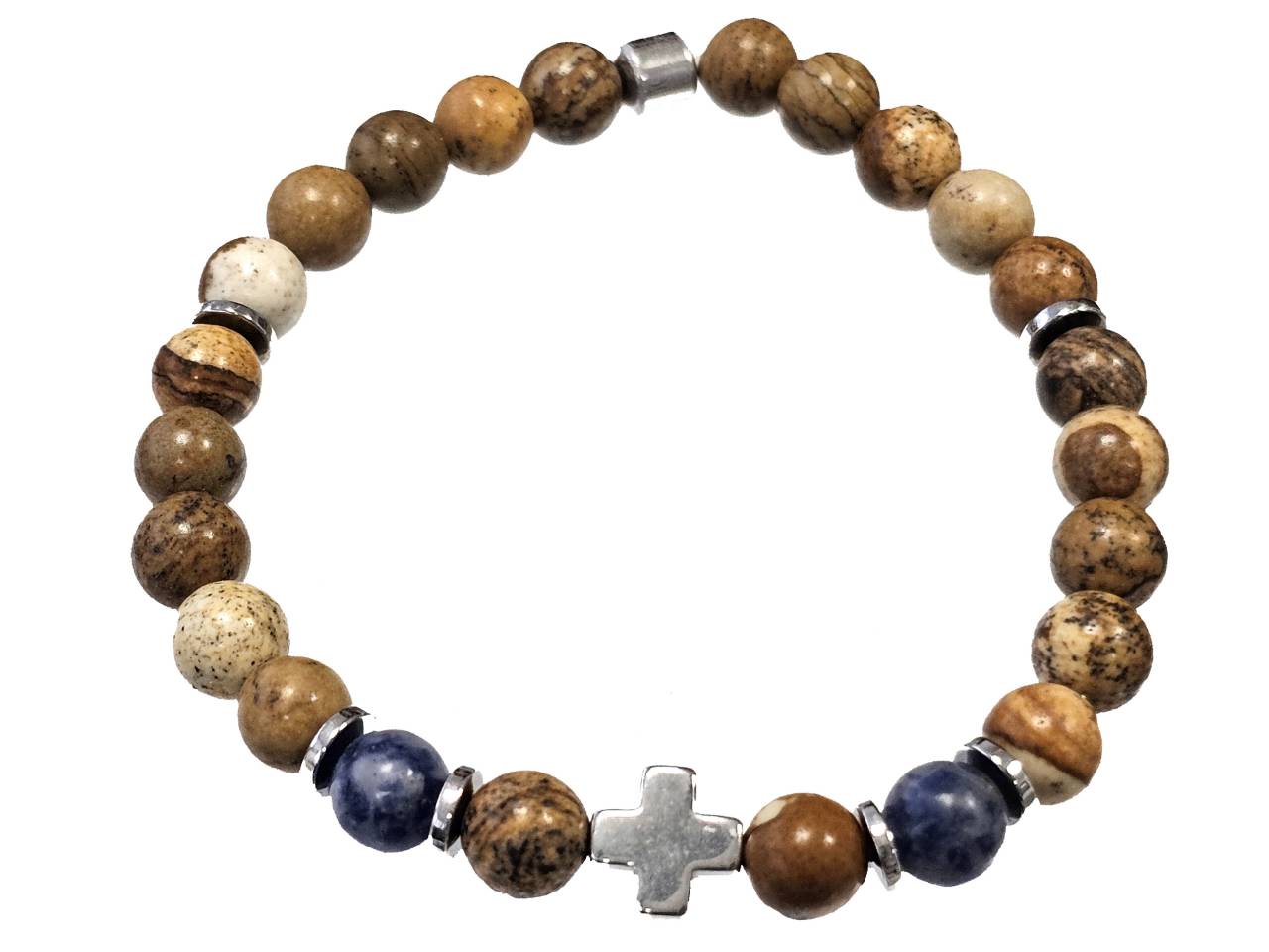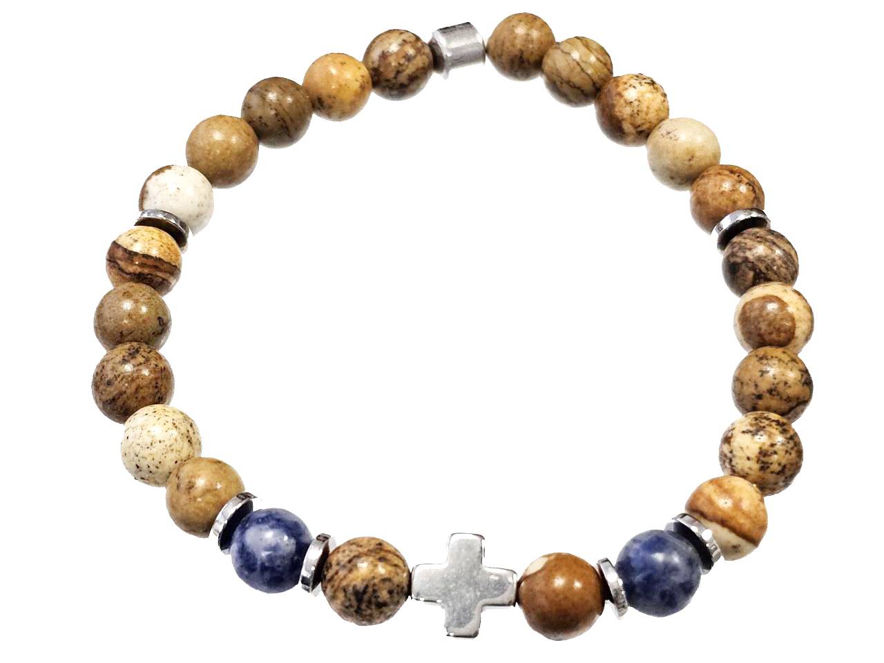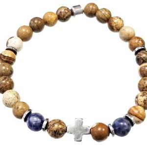 Βραχιόλι Πέτρα ελαστικό 6mm, με ημιπολύτιμες πέτρες και στοιχεία από αιματίτη