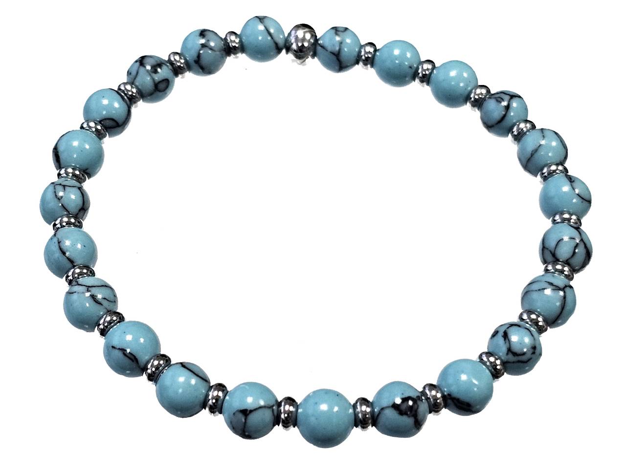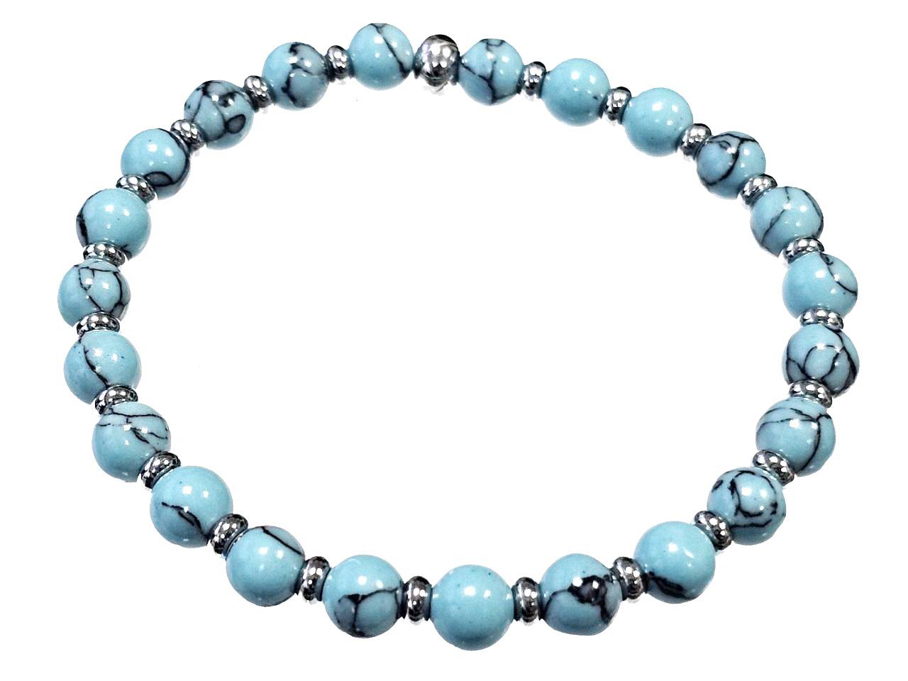Βραχιόλι Πέτρα ελαστικό 6mm, με ημιπολύτιμες πέτρες και στοιχεία από ατσάλι