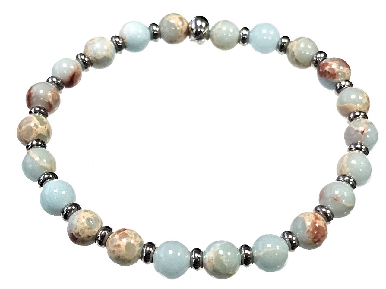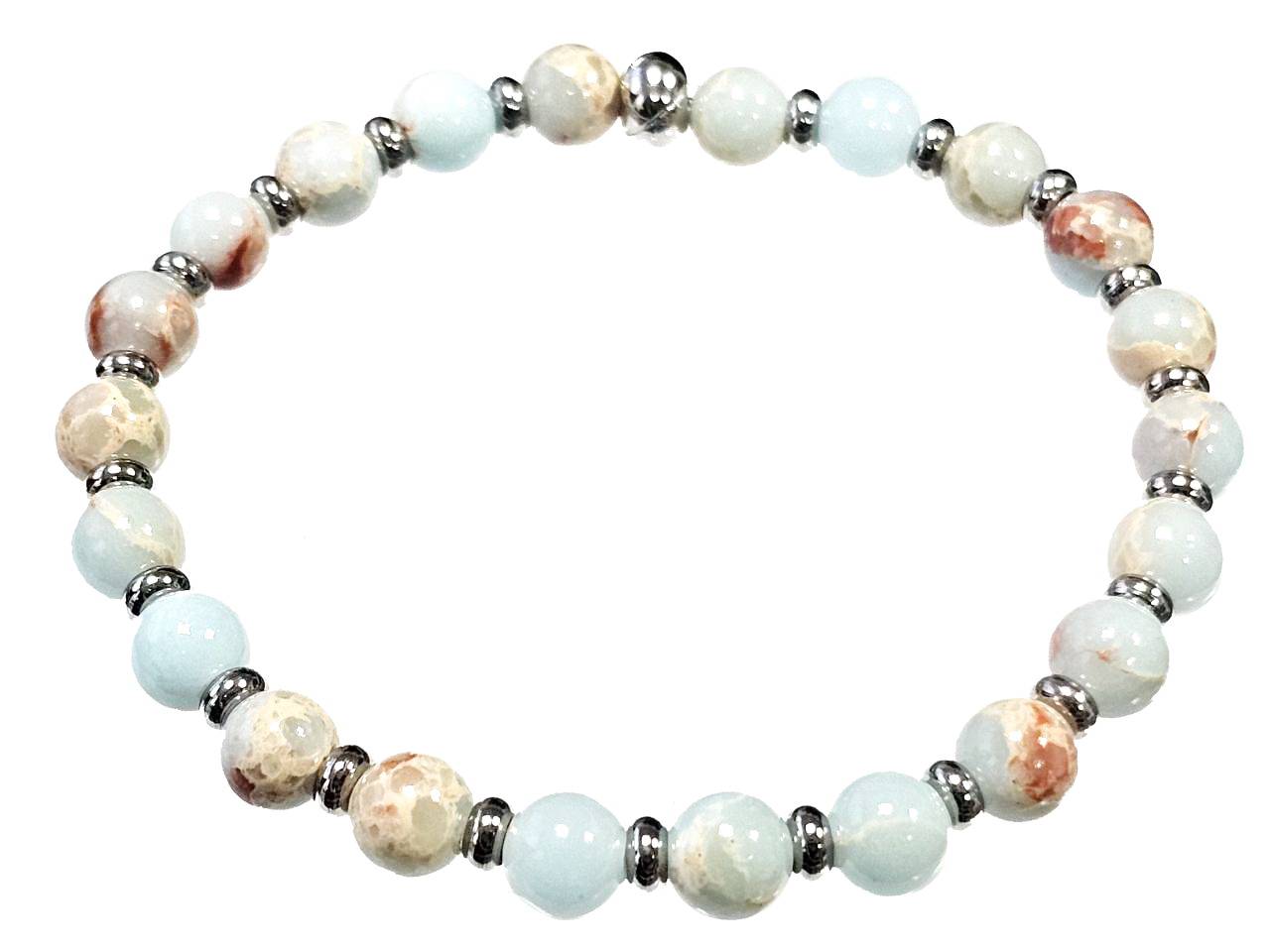 Βραχιόλι Πέτρα ελαστικό 6mm, με ημιπολύτιμες πέτρες και στοιχεία από ατσάλι