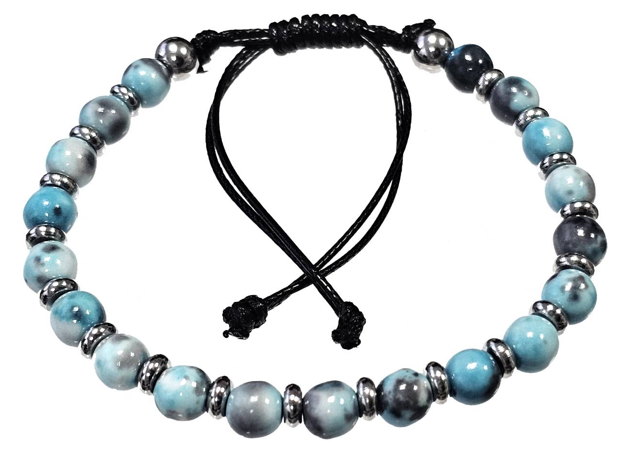 Βραχιόλι Πέτρα μακραμέ 6mm, με ημιπολύτιμες πέτρες και στοιχεία από ατσάλι