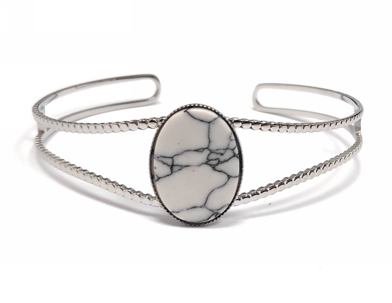 Βραχιόλι Πέτρα 316L, σταθερό με χαολίτη σε χρώμα Ασημί