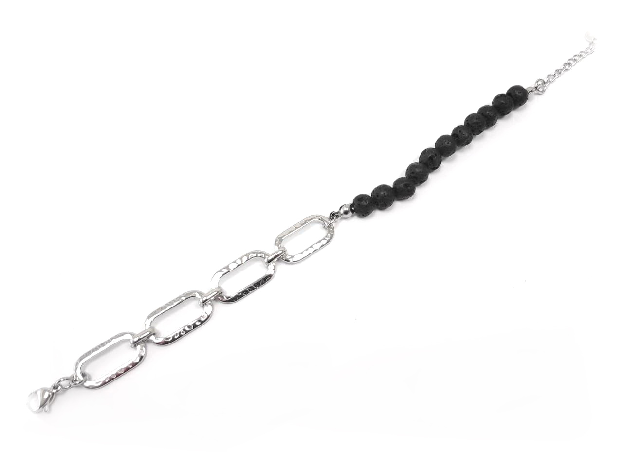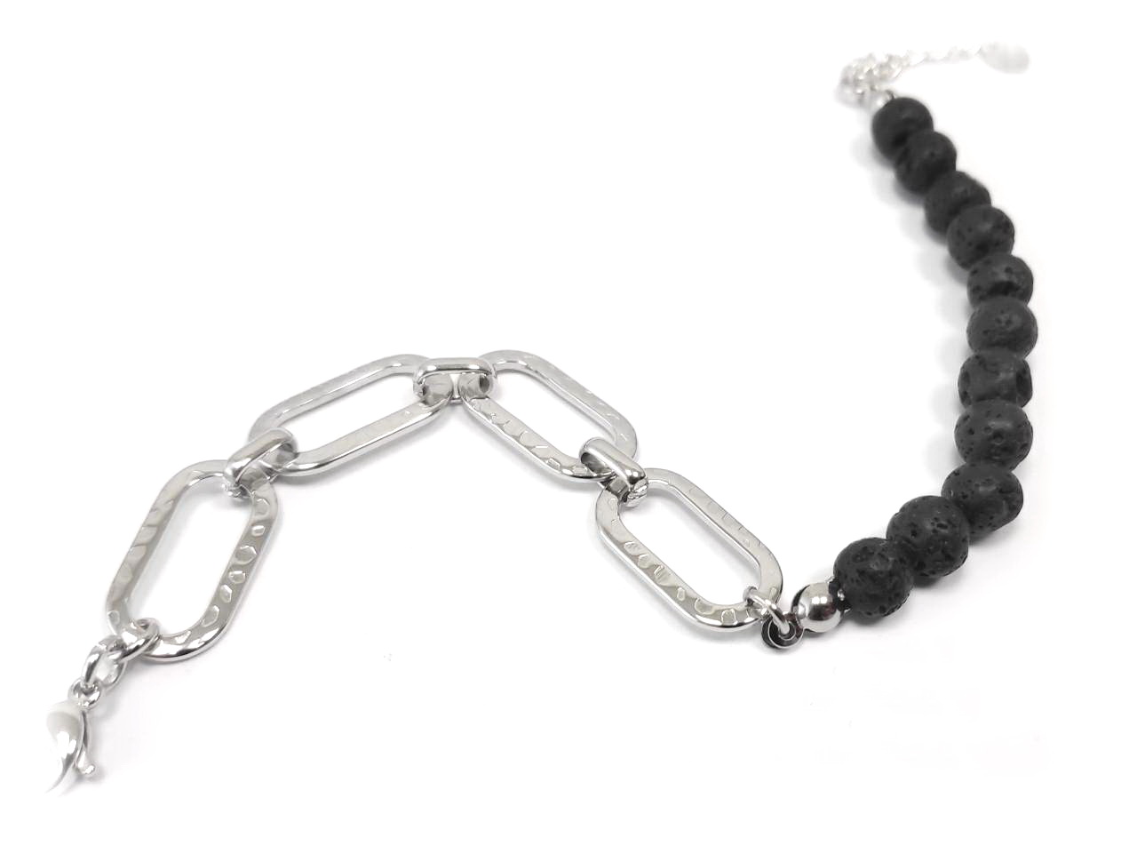 Βραχιόλι Πέτρα 316L, αλυσίδα με λάβα σε χρώμα Ασημί, Μήκος 18cm