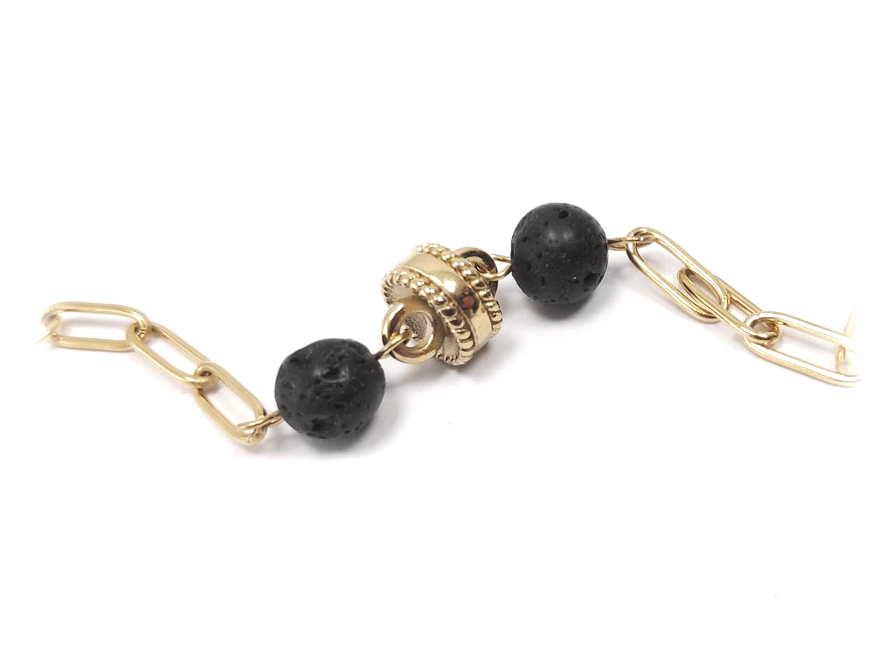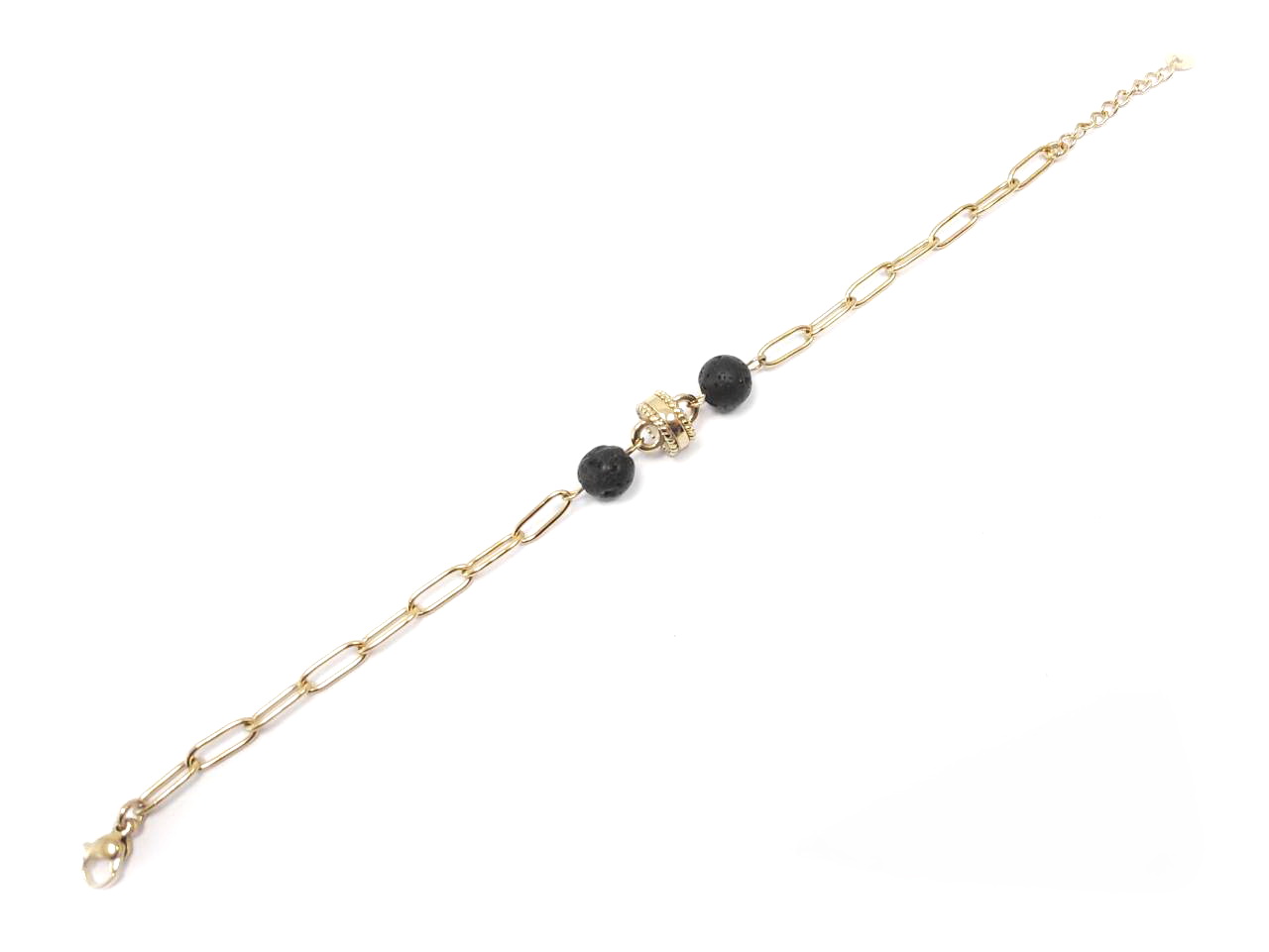 Βραχιόλι Πέτρα 316L, αλυσίδα με λάβα σε χρώμα Χρυσαφί, Μήκος 18cm