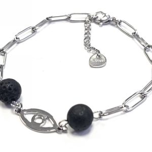 Βραχιόλι Πέτρα ατσάλι 316L, αλυσίδα με λάβα και μάτι σε χρώμα Ασημί