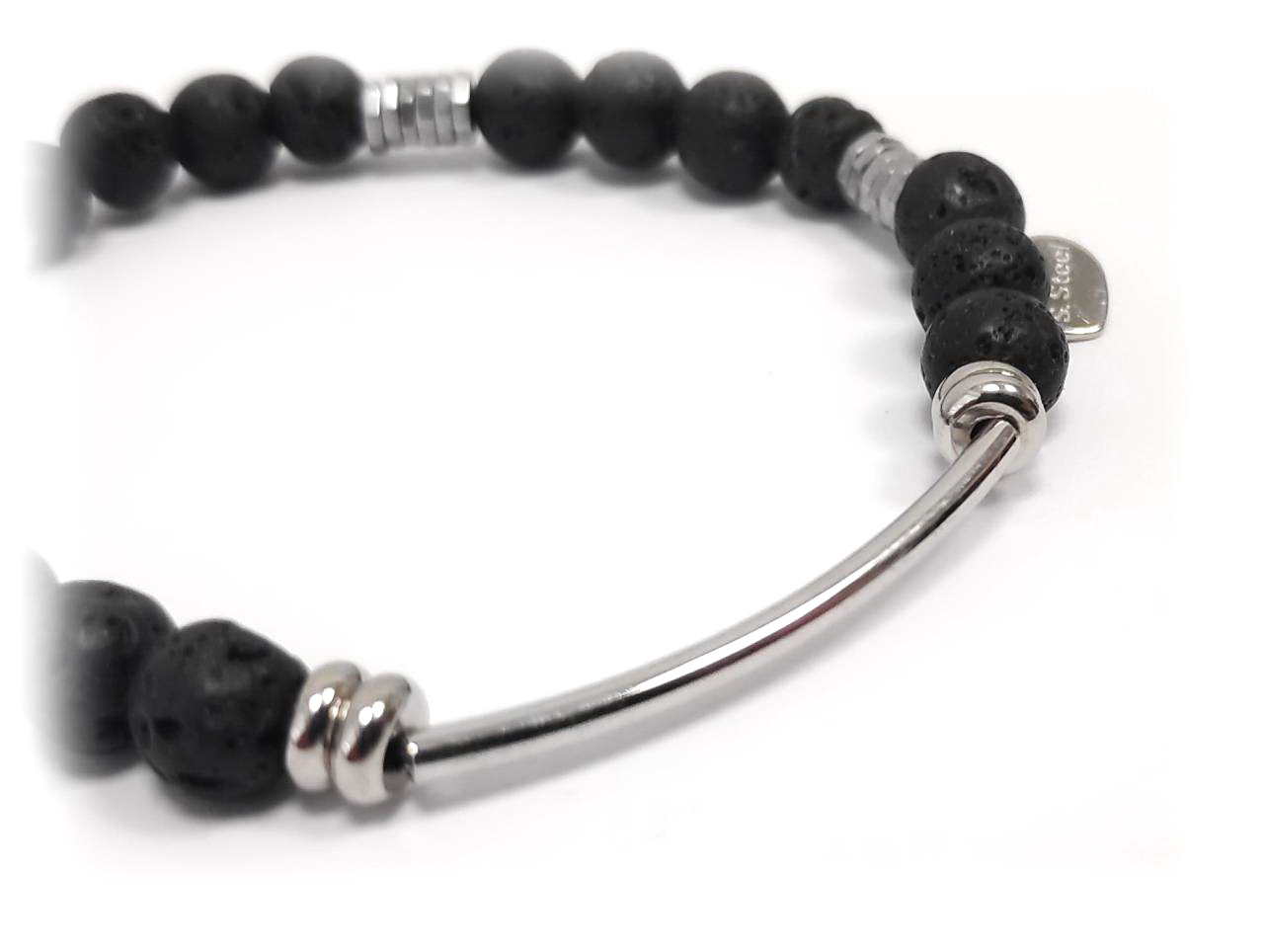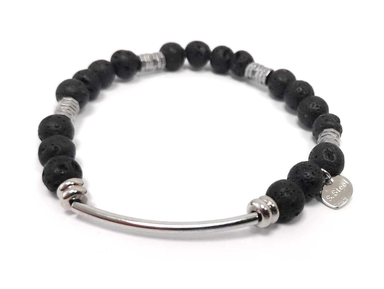 Βραχιόλι Πέτρα 316L, με λάβα σε χρώμα Ασημί
