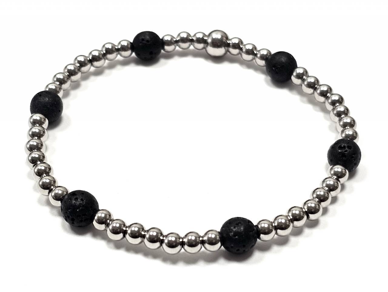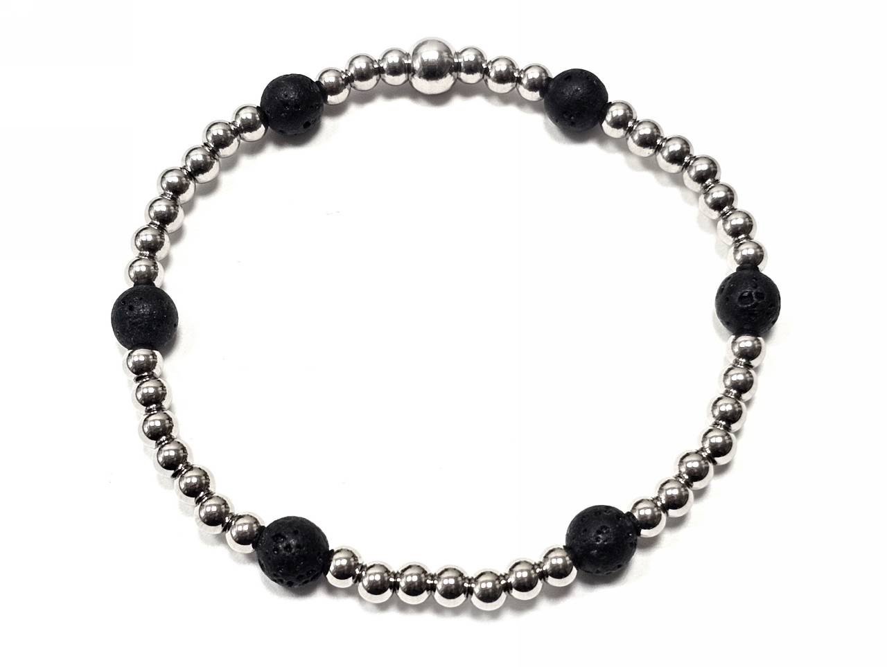 Βραχιόλι Πέτρα λάστιχο, 6# λάβα και ατσάλινα στοιχεία σε χρώμα Ασημί