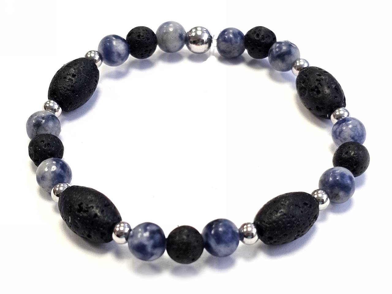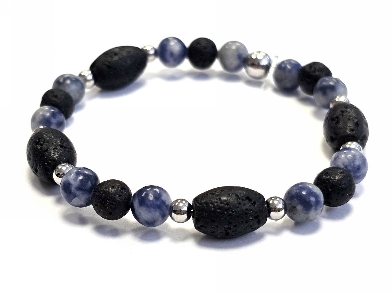 Βραχιόλι Πέτρα λάστιχο, 6# λάβα, πέτρες και ατσάλινα στοιχεία σε χρώμα Ασημί