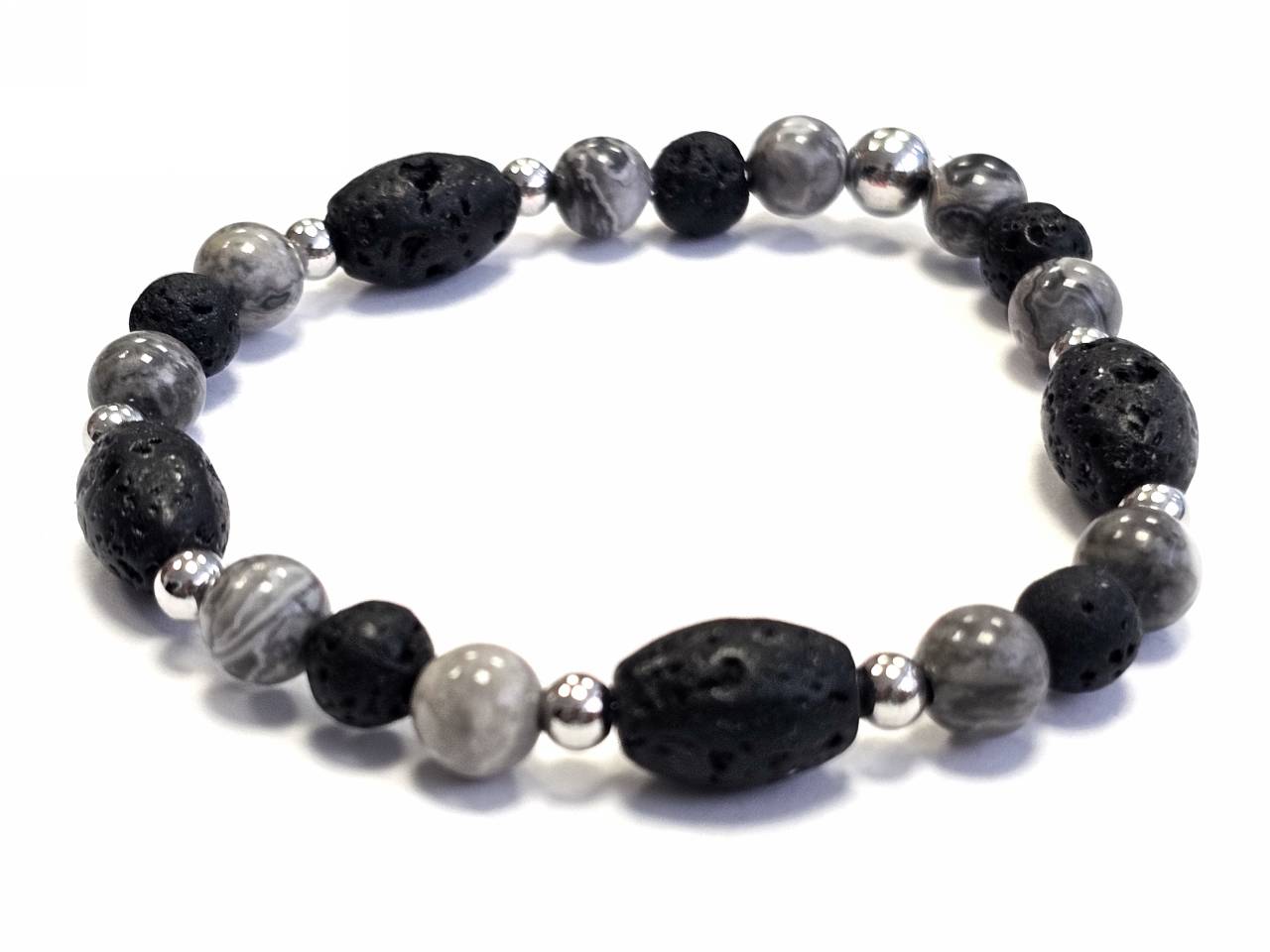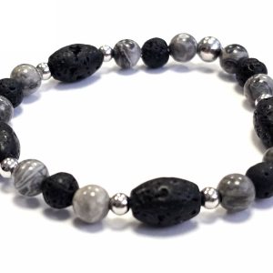 Βραχιόλι Πέτρα λάστιχο, 6# λάβα, πέτρες και ατσάλινα στοιχεία σε χρώμα Ασημί
