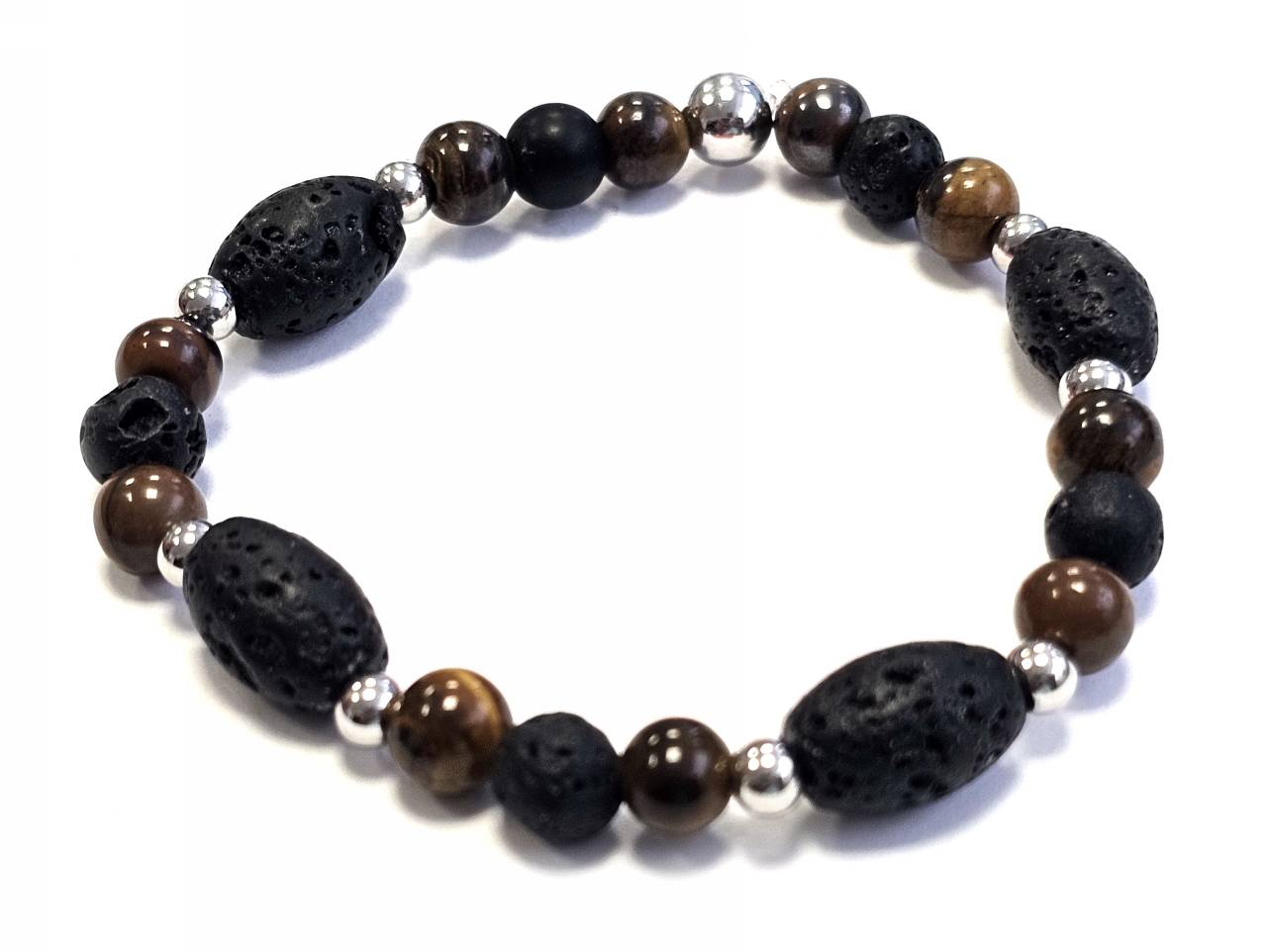 Βραχιόλι Πέτρα λάστιχο, 6# λάβα, πέτρες και ατσάλινα στοιχεία σε χρώμα Ασημί