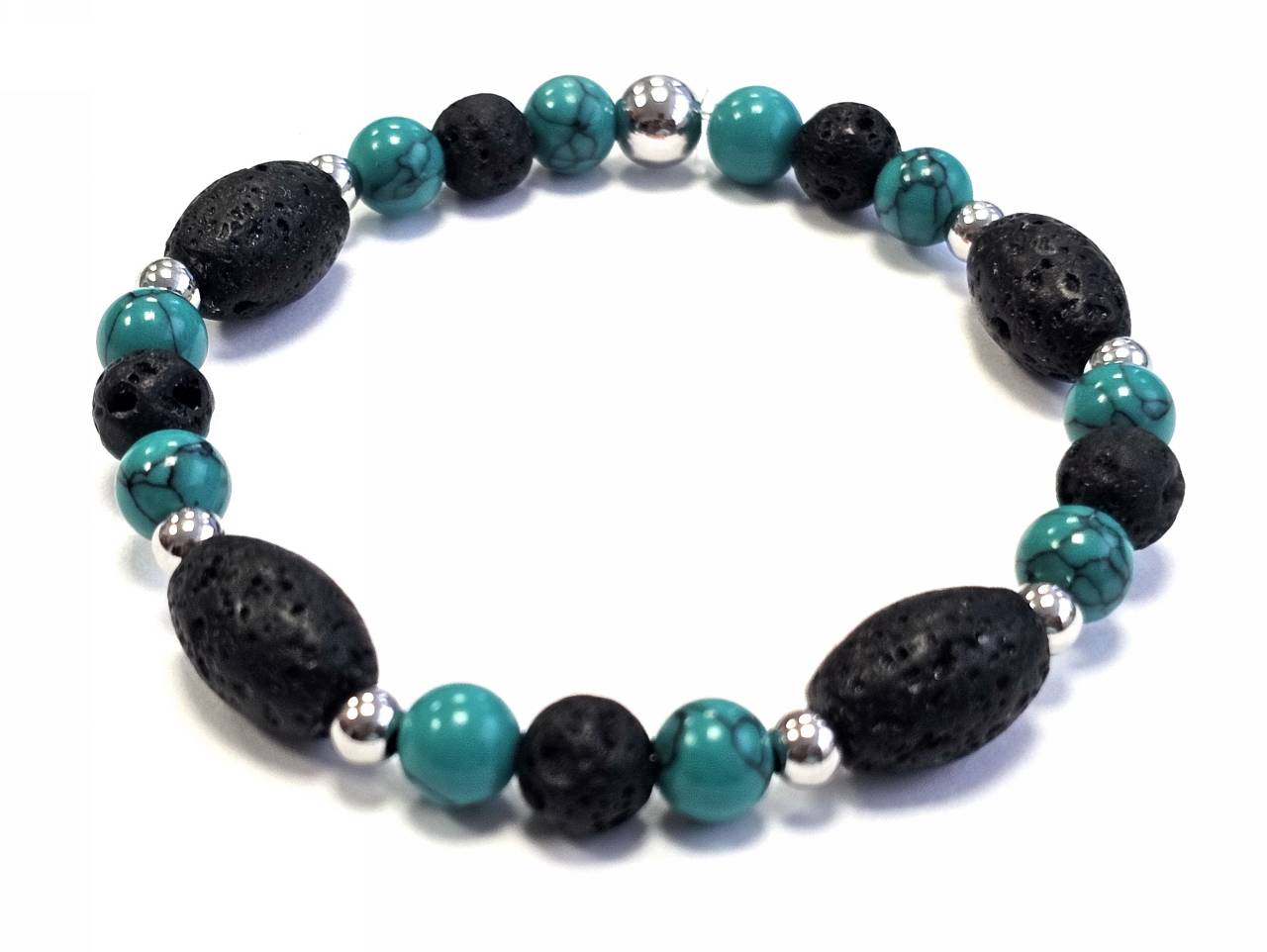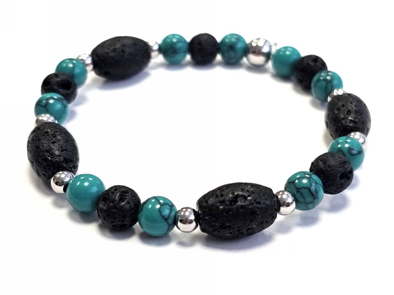 Βραχιόλι Πέτρα λάστιχο, 6# λάβα, πέτρες και ατσάλινα στοιχεία σε χρώμα Ασημί