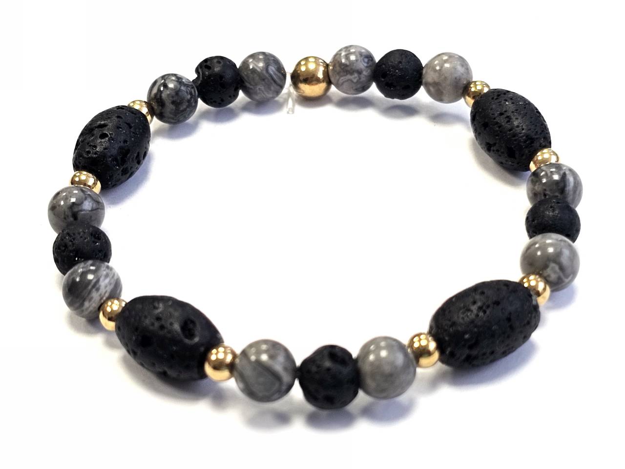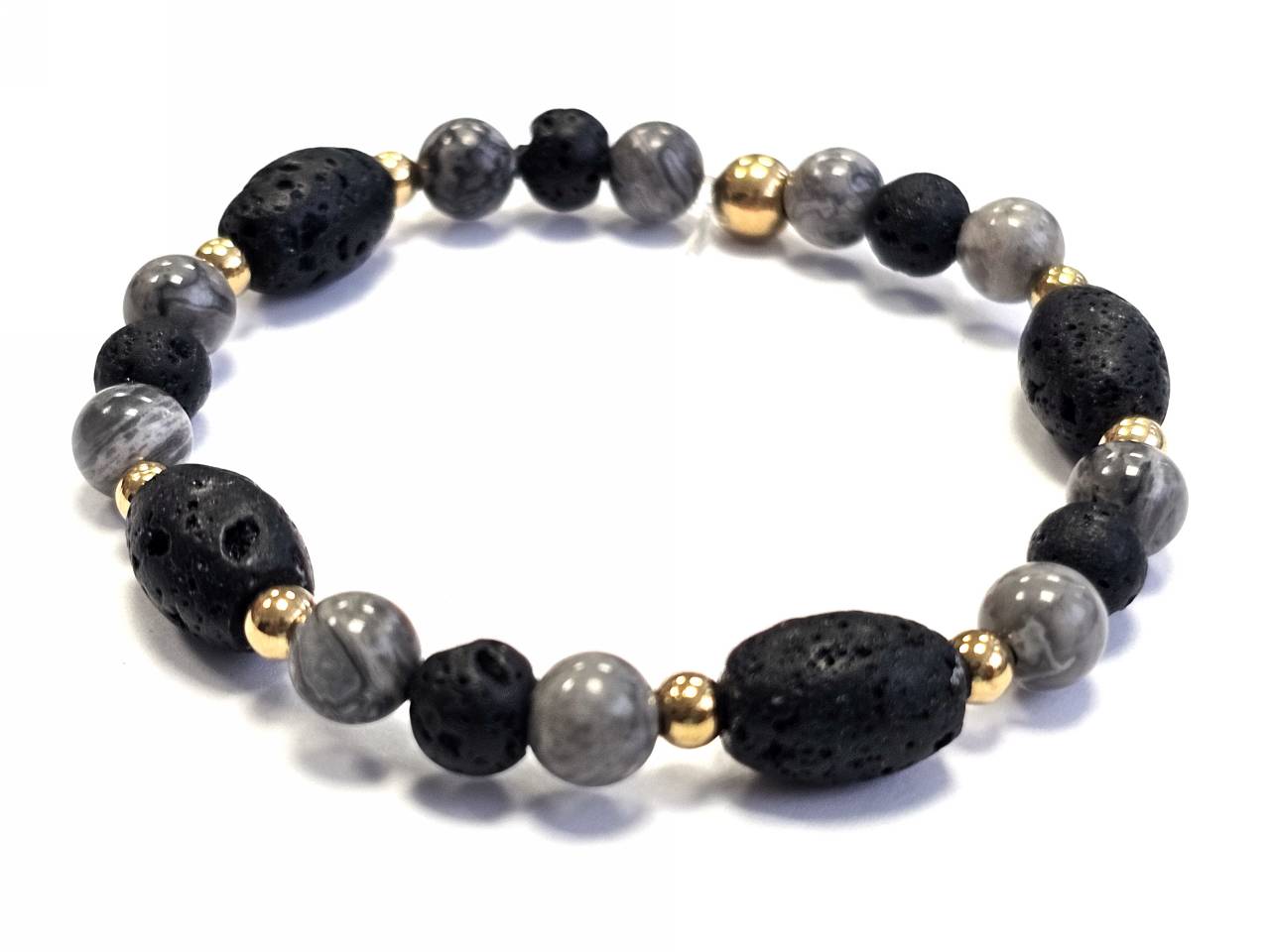 Βραχιόλι Πέτρα λάστιχο, 6# λάβα, πέτρες και ατσάλινα στοιχεία σε χρώμα Χρυσαφί