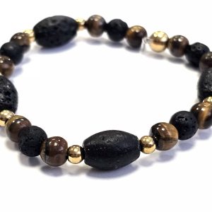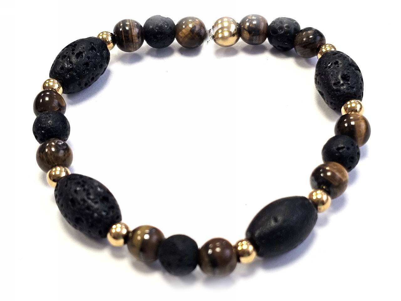 Βραχιόλι Πέτρα λάστιχο, 6# λάβα, πέτρες και ατσάλινα στοιχεία σε χρώμα Χρυσαφί