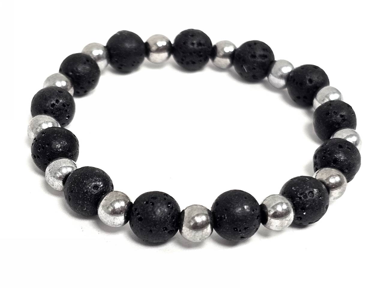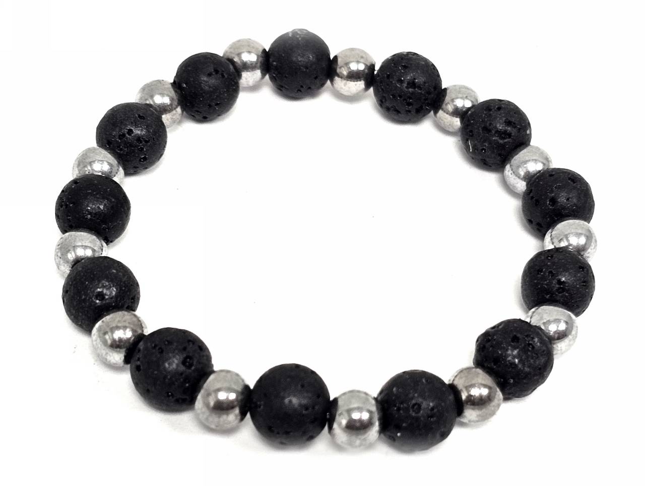 Βραχιόλι Πέτρα λάστιχο, 8# λάβα, και στοιχεία από αιματίτη σε χρώμα Ασημί