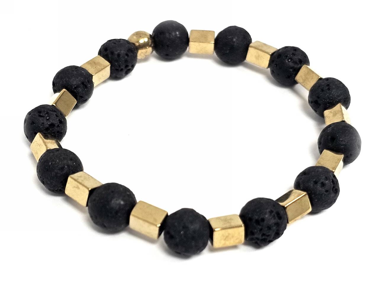 Βραχιόλι Πέτρα λάστιχο, 8# λάβα, και στοιχεία από αιματίτη σε χρώμα Χρυσαφί