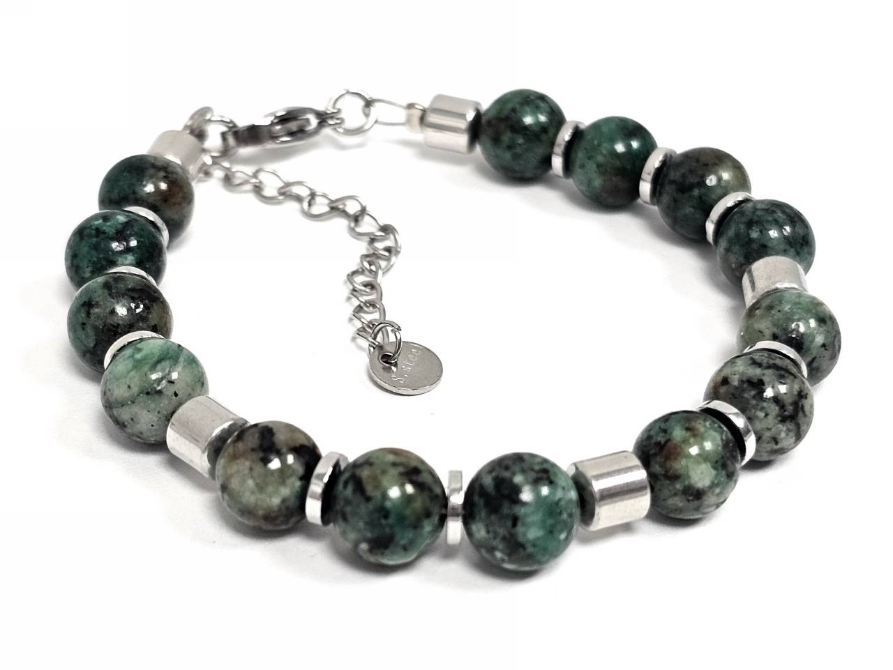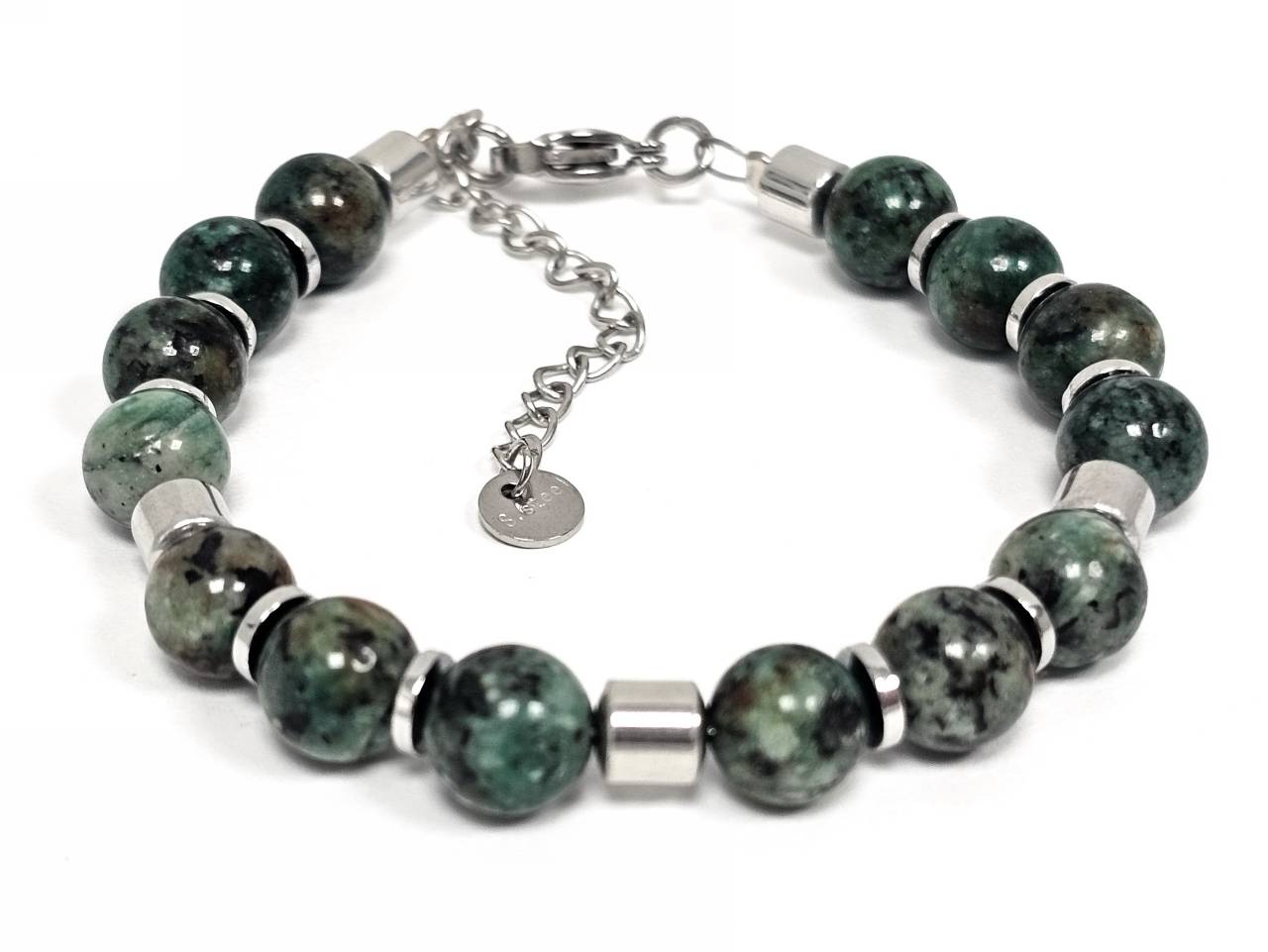 Βραχιόλι Πέτρα ατσάλι αλυσίδα με μαλαχίτη και στοιχεία από αιματίτη σε χρώμα Ασημί