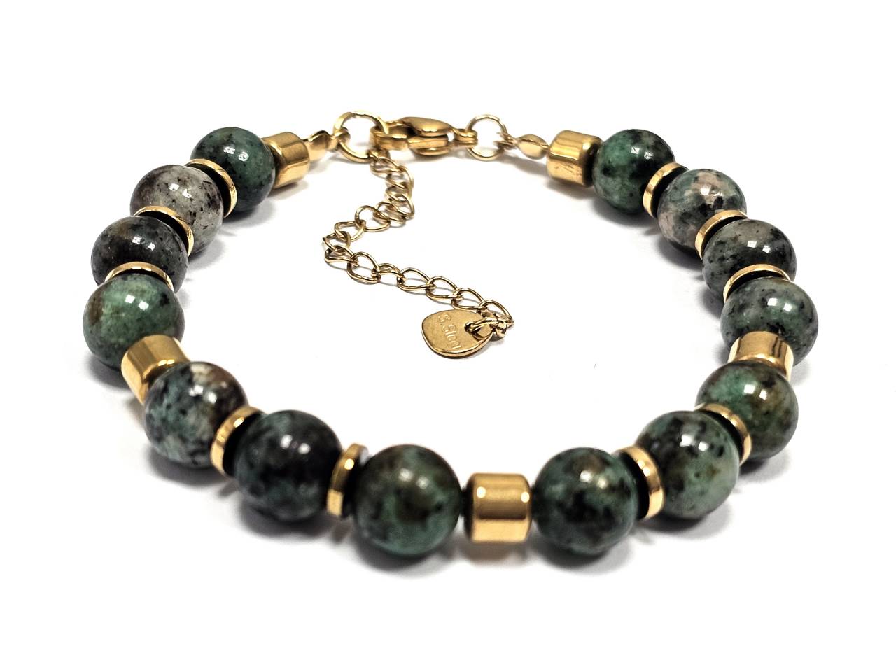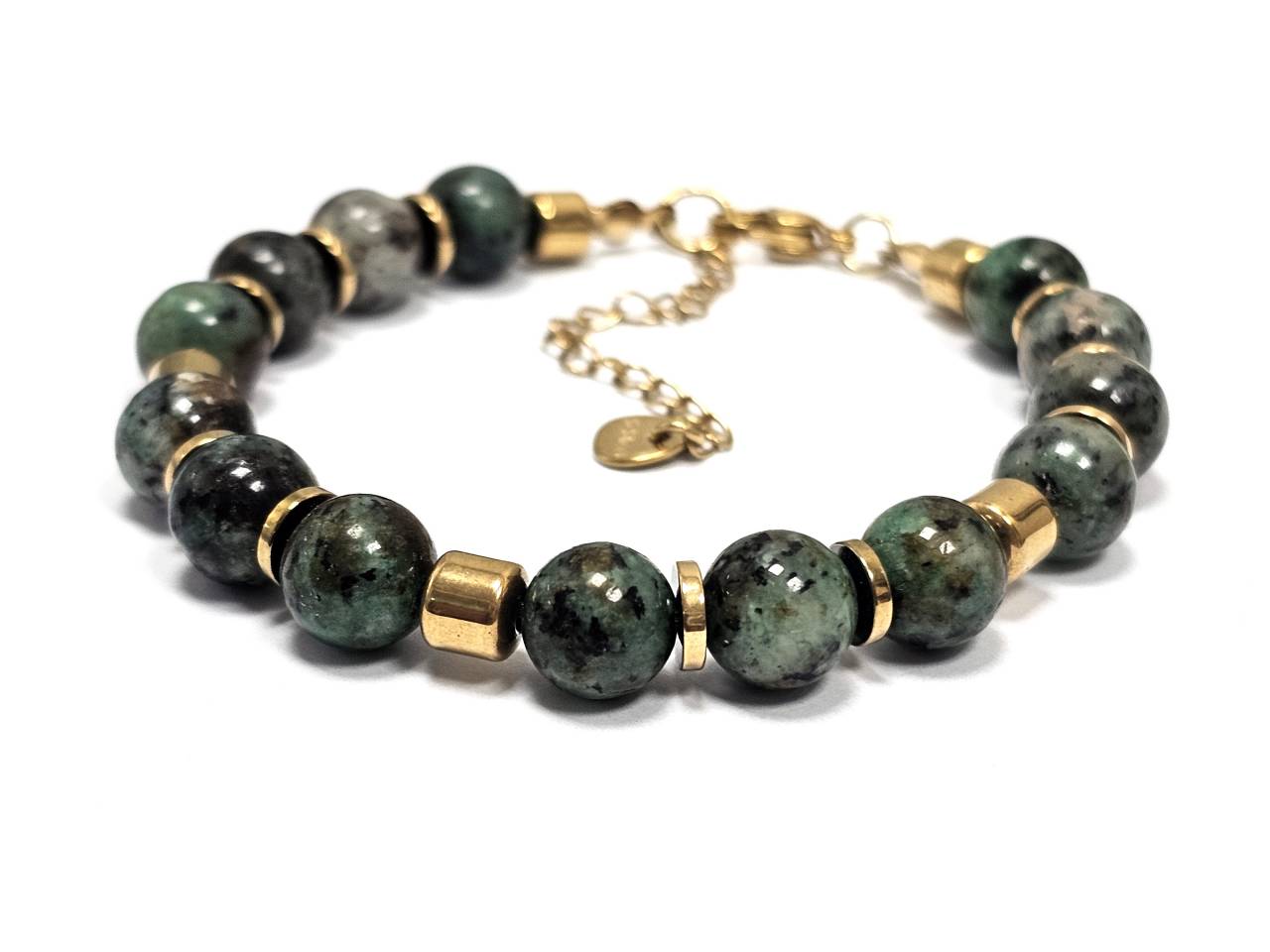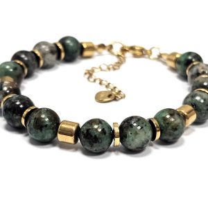 Βραχιόλι Πέτρα ατσάλι αλυσίδα με μαλαχίτη και στοιχεία από αιματίτη σε χρώμα Χρυσαφί