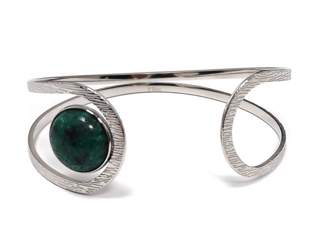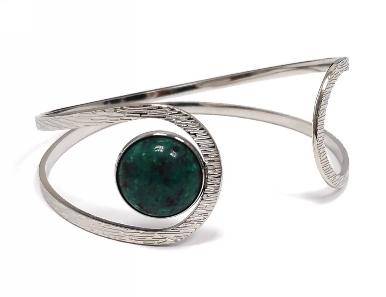 Βραχιόλι Πέτρα 316L, σταθερό με μαλαχίτη σε χρώμα Ασημί