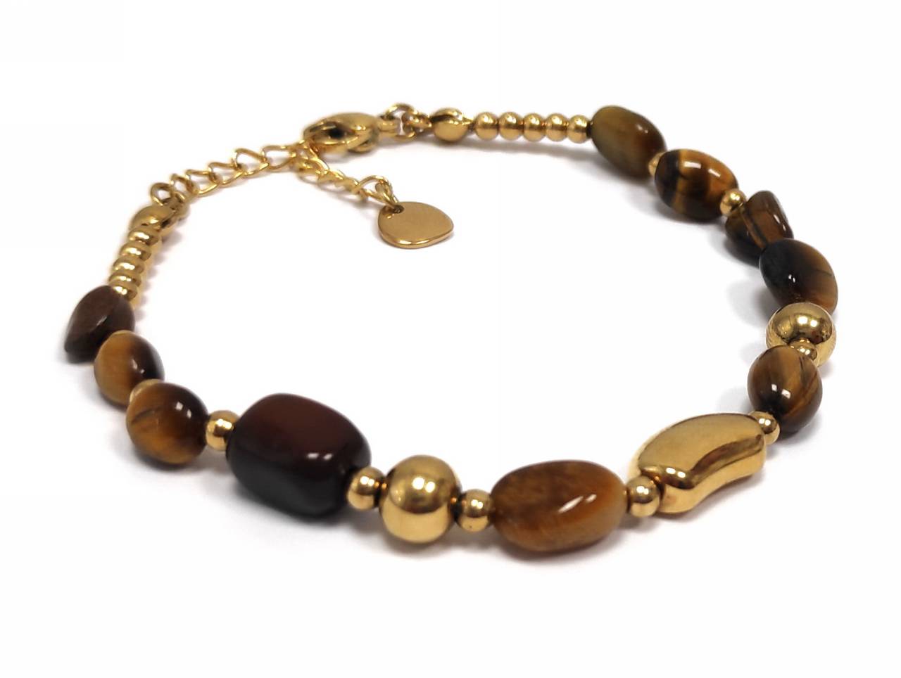 Βραχιόλι Πέτρα 316L, αλυσίδα με μάτι τίγρης σε χρώμα Χρυσαφί