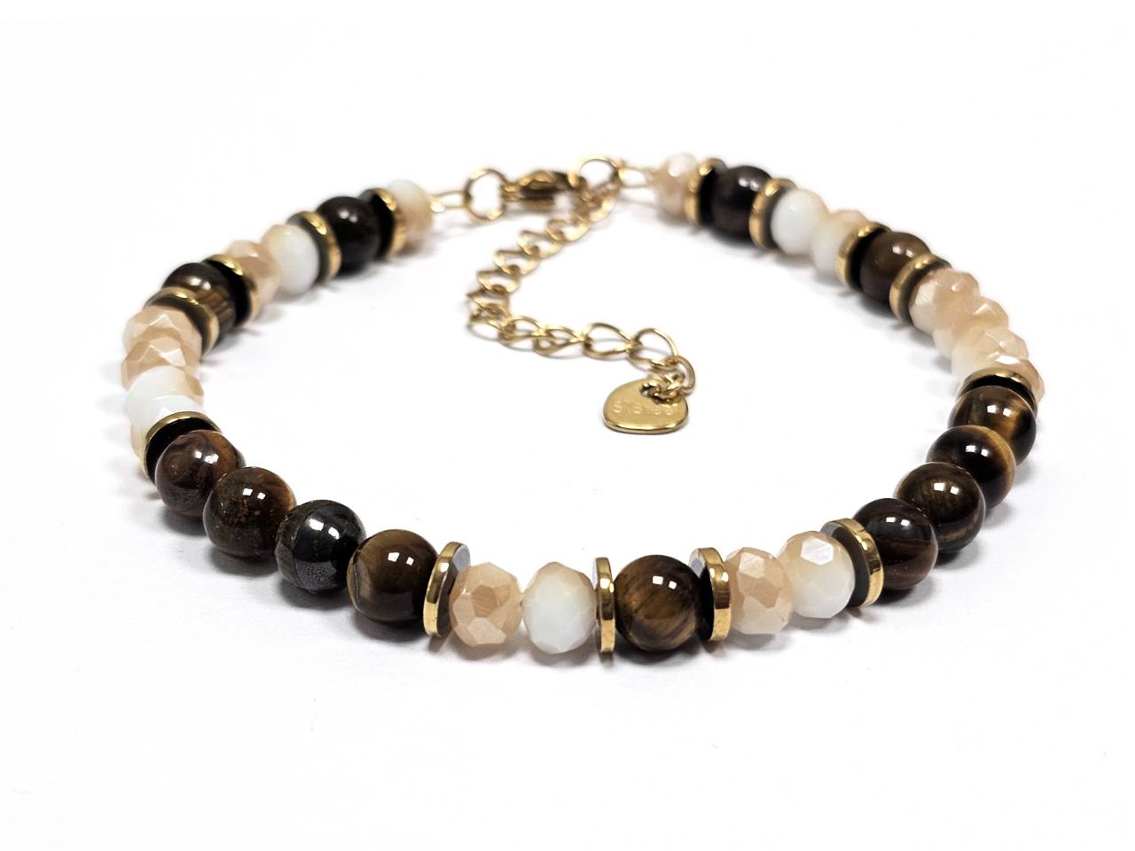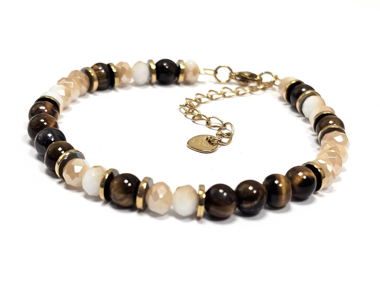 Βραχιόλι Πέτρα με ημιπολύτιμες πέτρες και στοιχεία από αιματίτη σε χρώμα Χρυσαφί