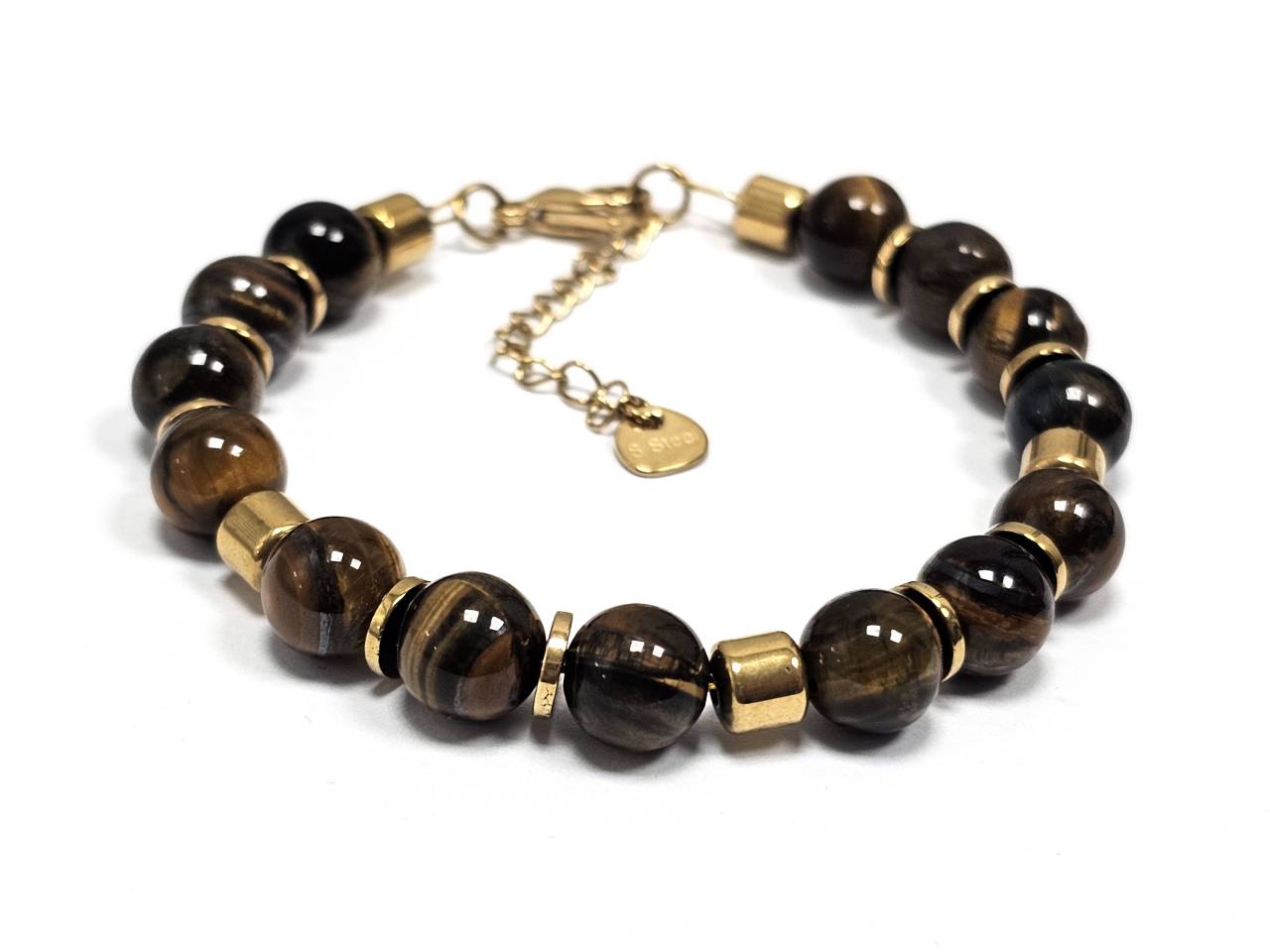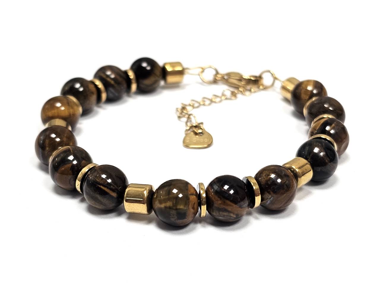 Βραχιόλι Πέτρα με μάτι τίγρης και στοιχεία από αιματίτη σε χρώμα Χρυσαφί
