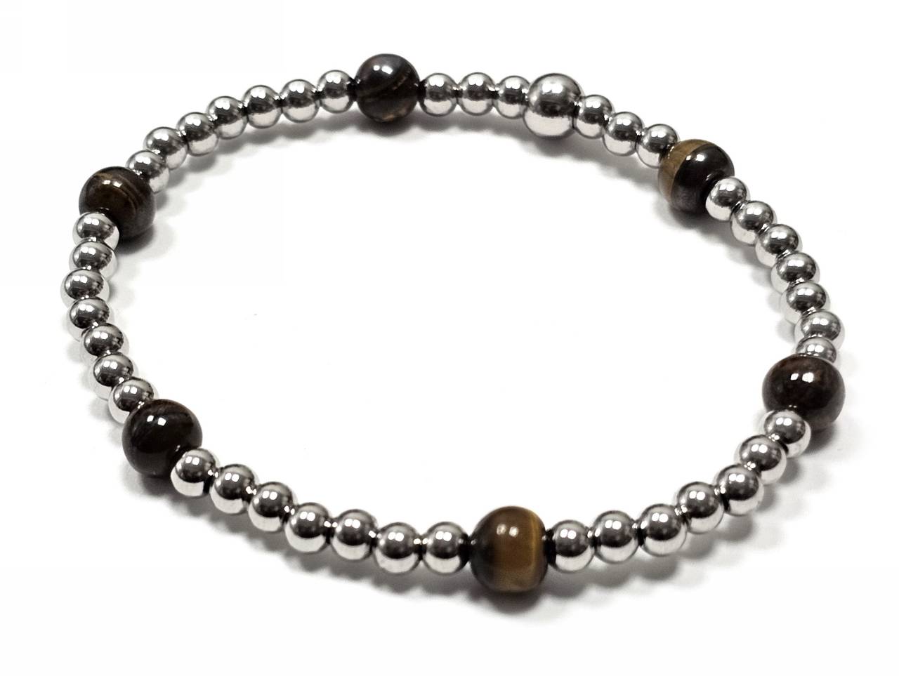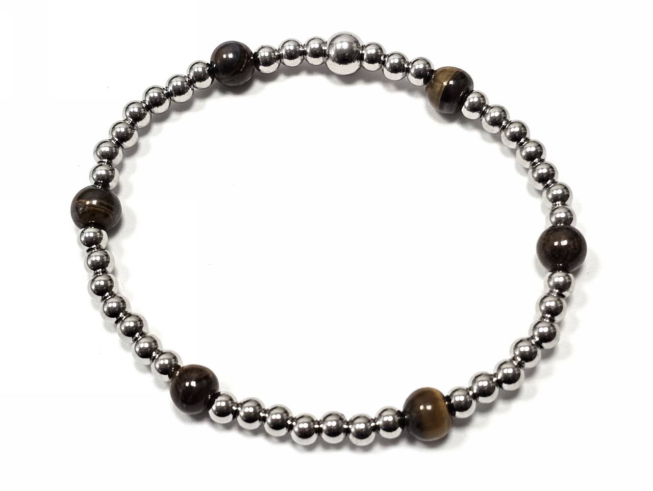 Βραχιόλι Πέτρα λάστιχο, 6# μάτι τίγρης και ατσάλινα στοιχεία σε χρώμα Ασημί