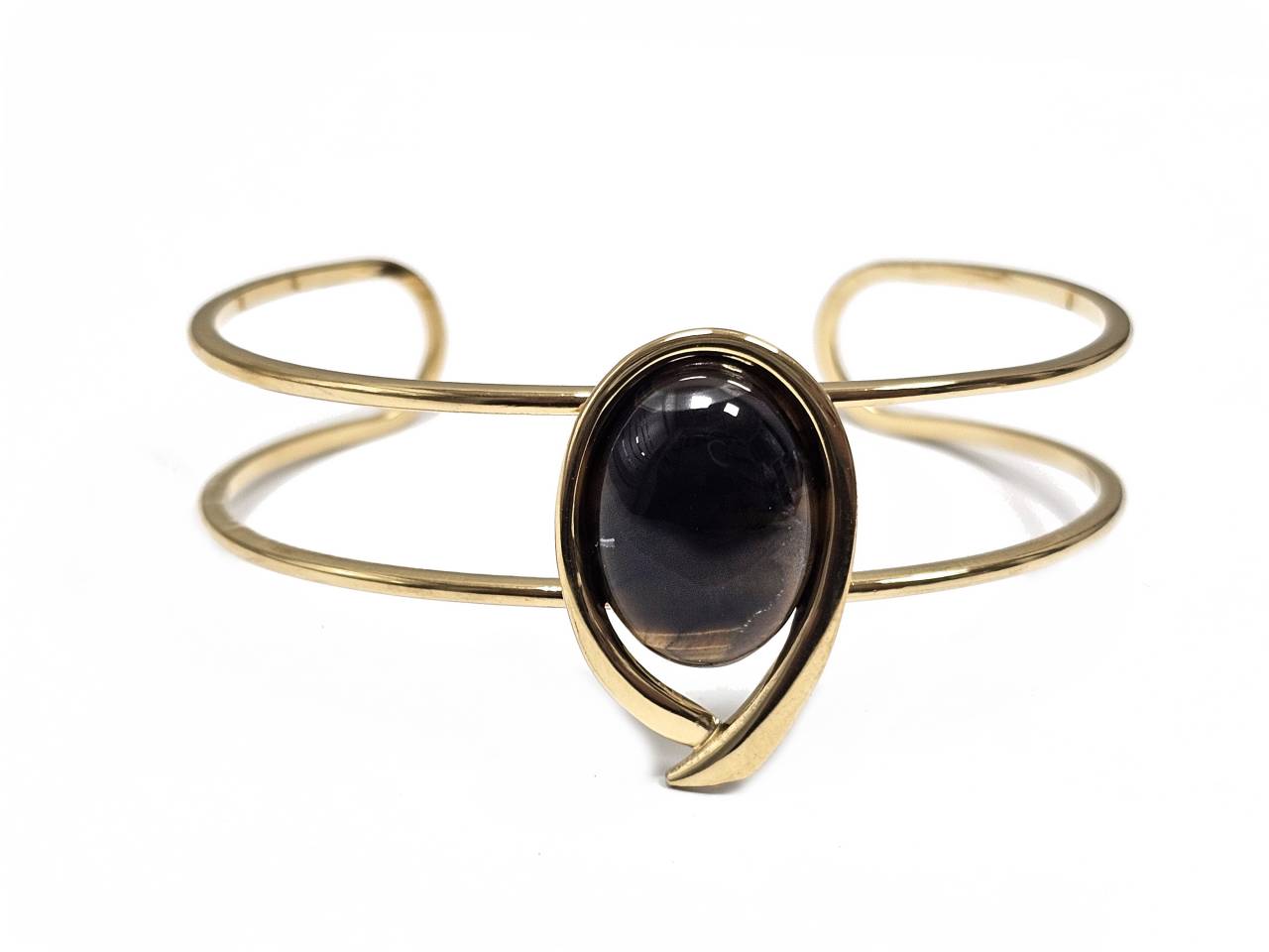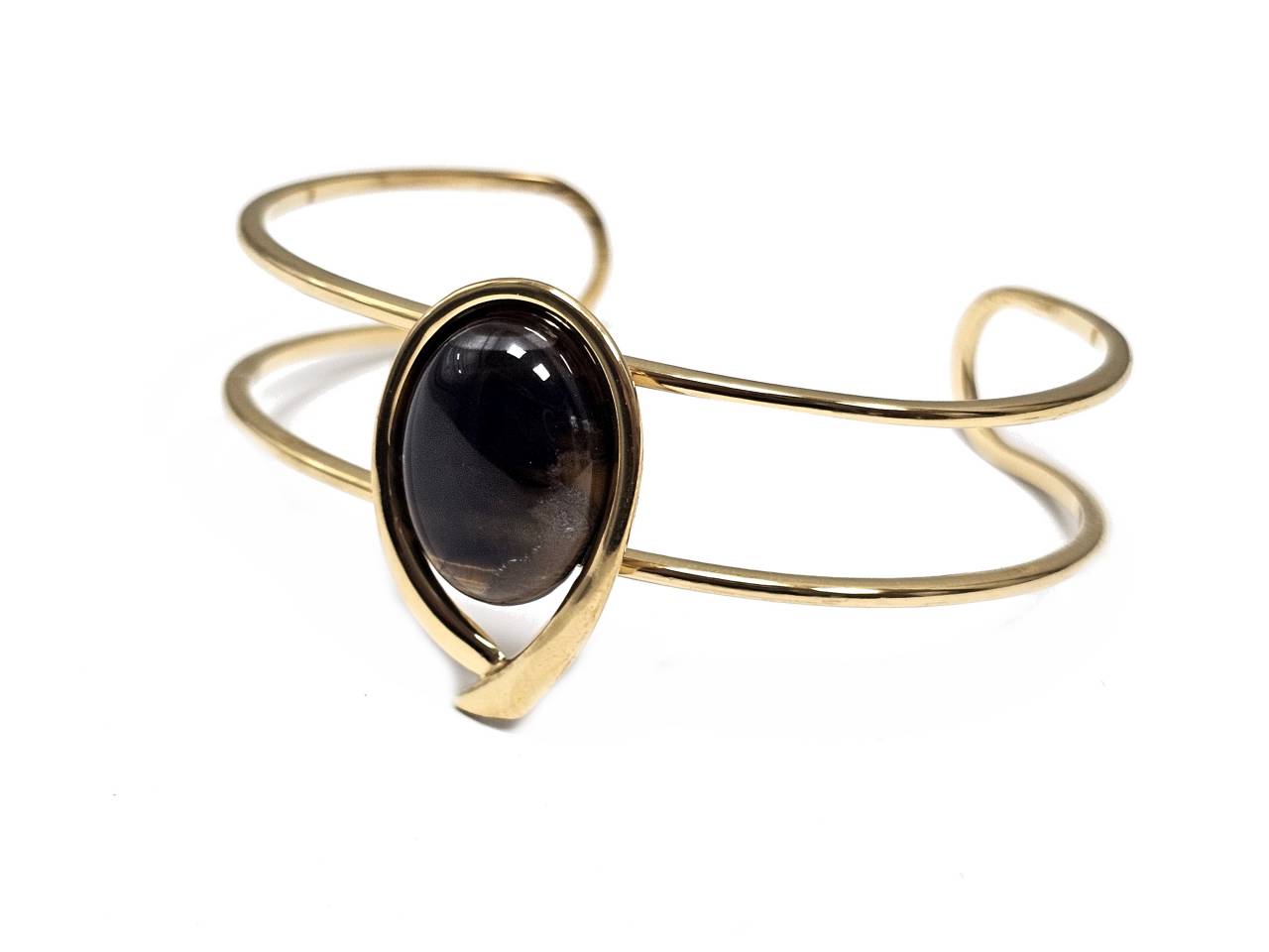 Βραχιόλι Πέτρα 316L, σταθερό με μάτι τίγρης σε χρώμα Χρυσαφί
