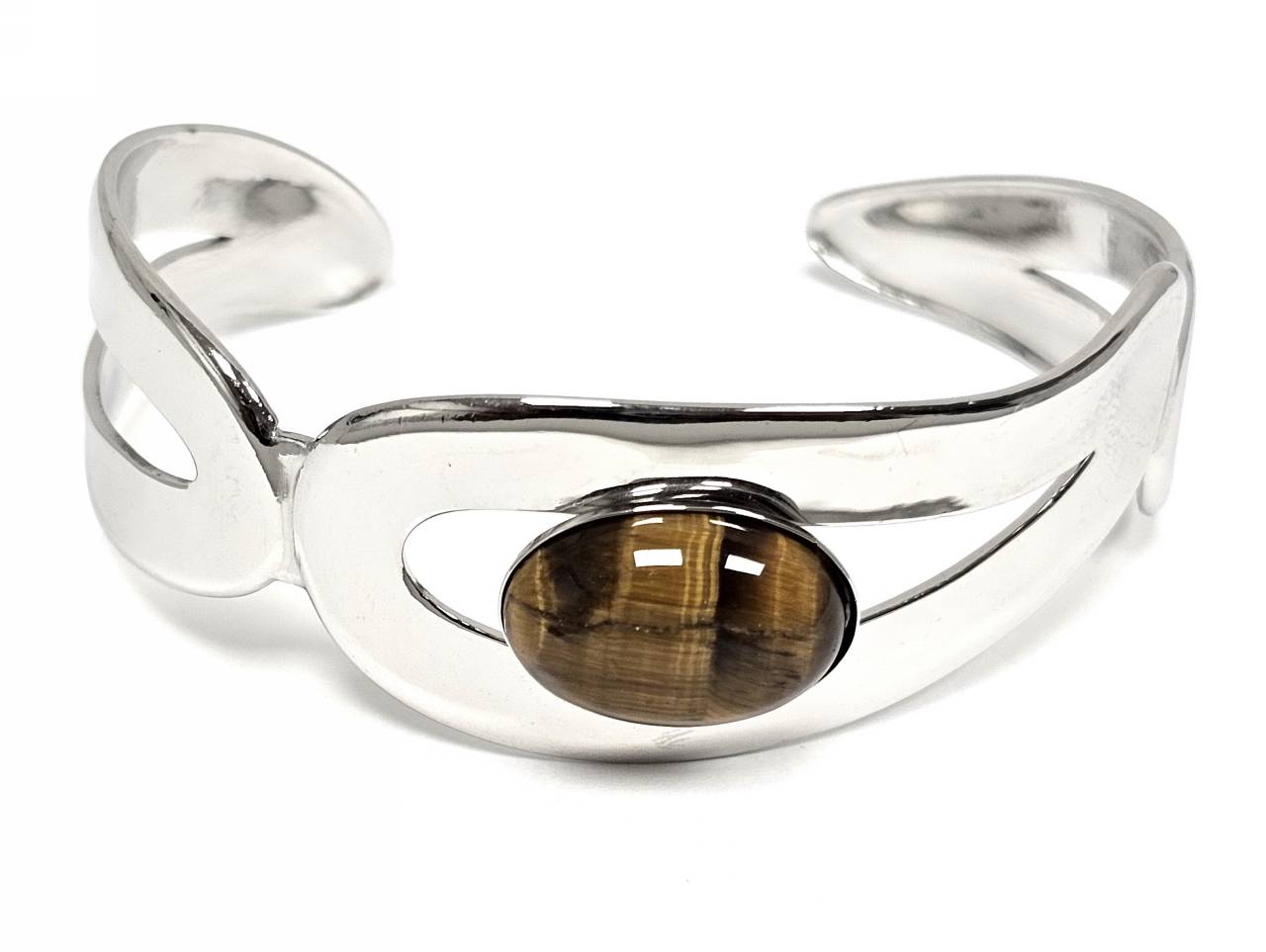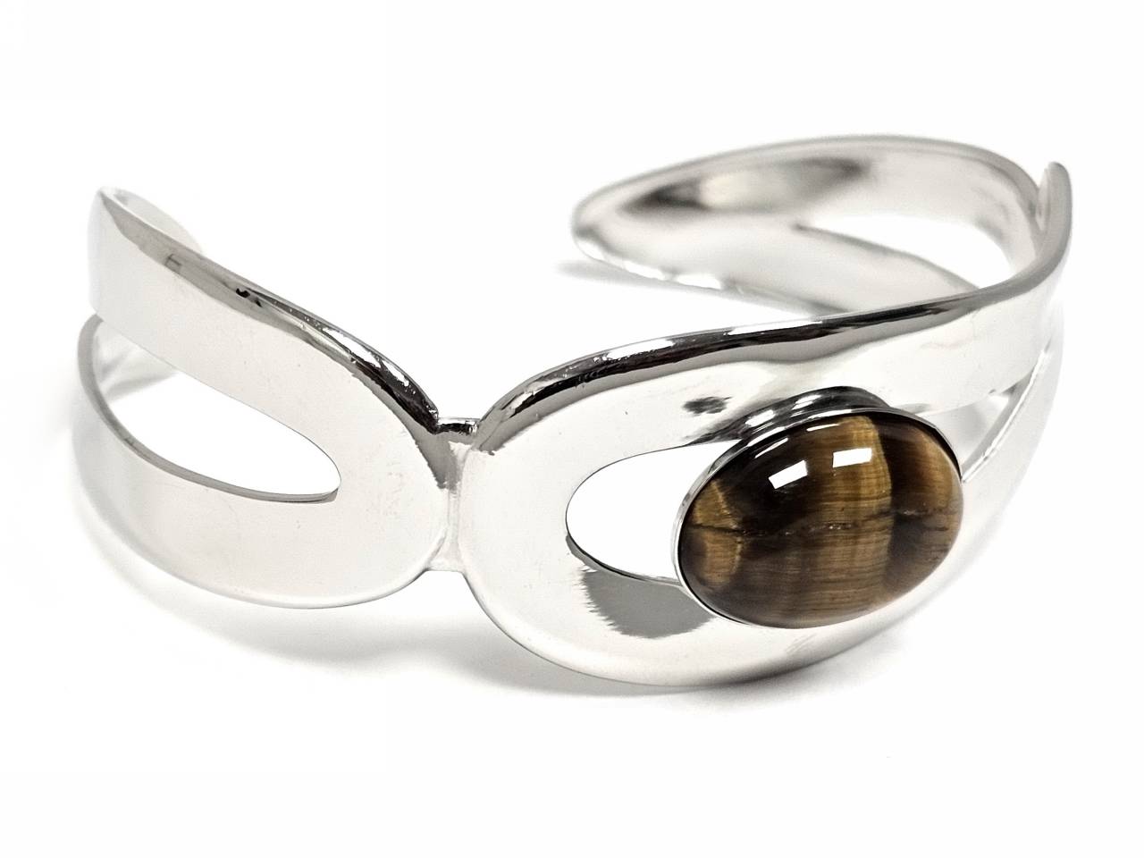 Βραχιόλι Πέτρα ατσάλι 316L, σταθερό με μάτι τίγρης σε χρώμα Ασημί