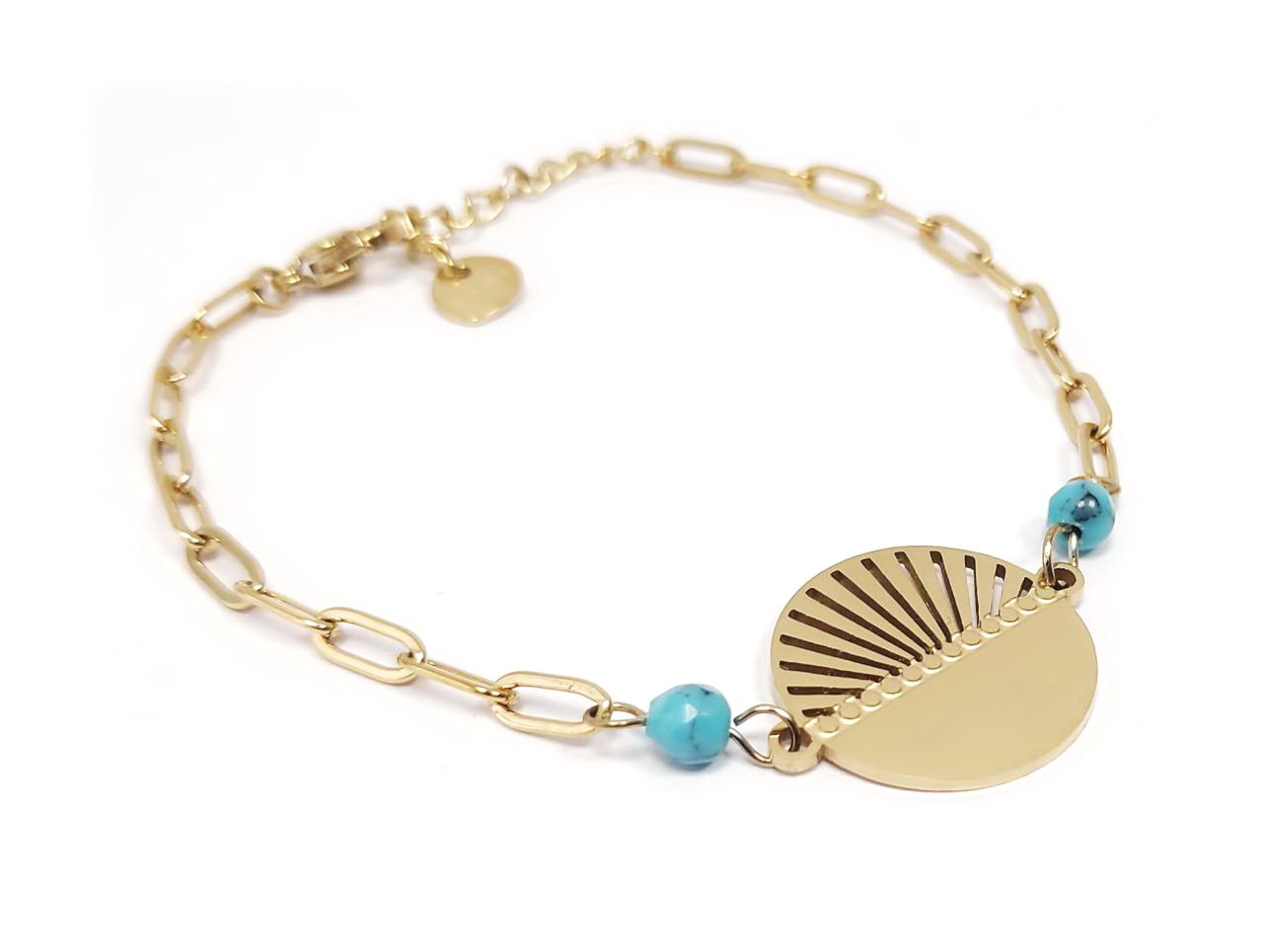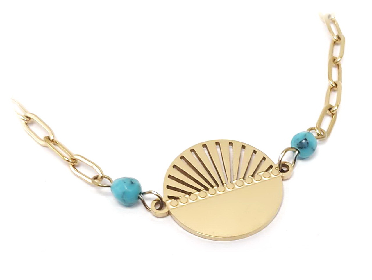 Βραχιόλι Πέτρα 316L, αλυσίδα και τυρκουάζ σε χρώμα Χρυσαφί