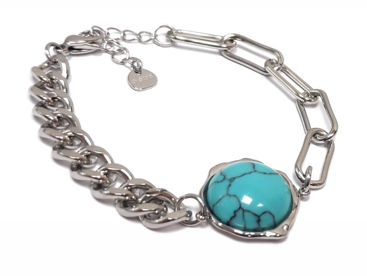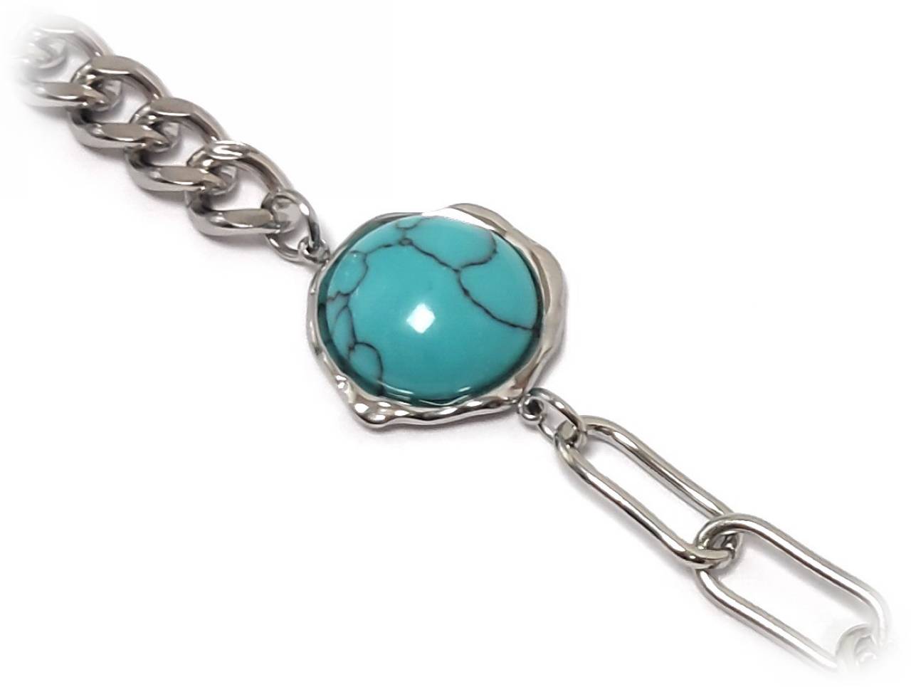 Βραχιόλι Πέτρα 316L, αλυσίδα με τυρκουάζ σε χρώμα Ασημί