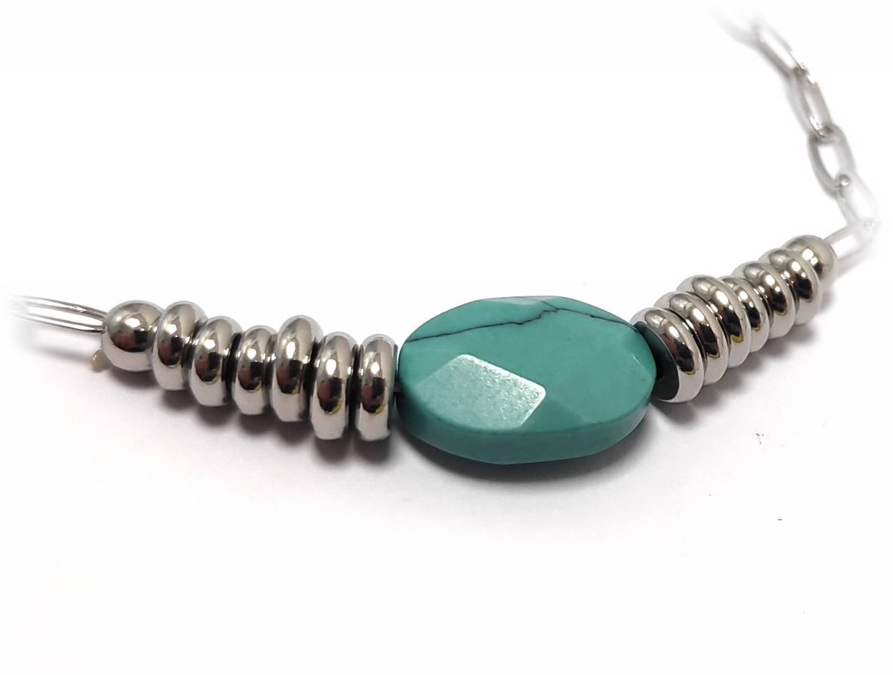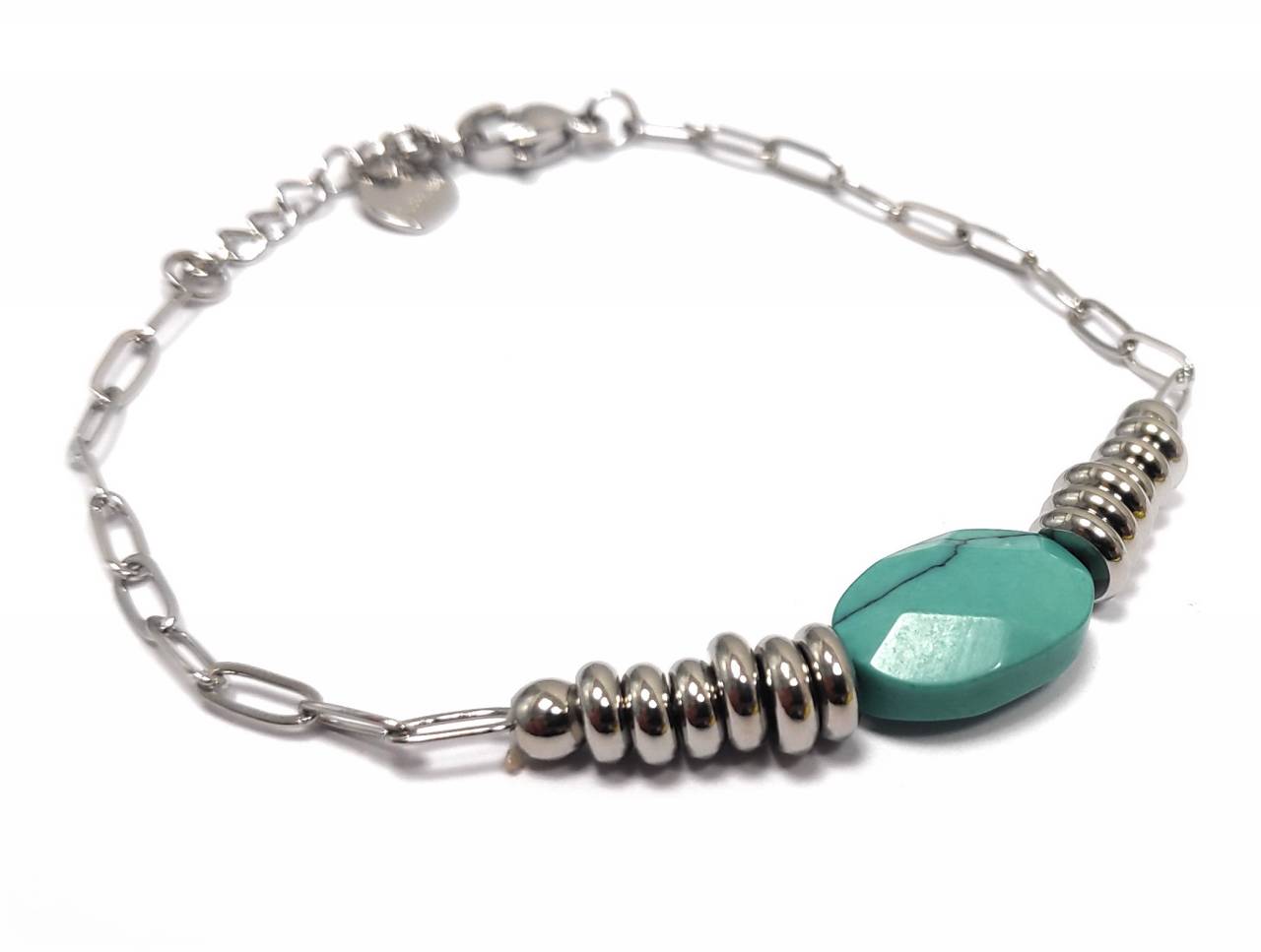 Βραχιόλι Πέτρα 316L, αλυσίδα με τυρκουάζ σε χρώμα Ασημί, Μήκος 18cm