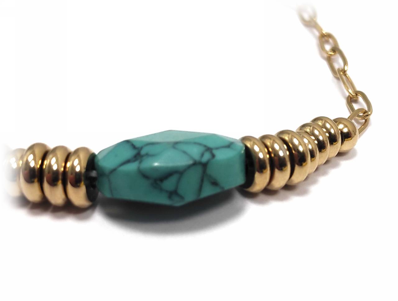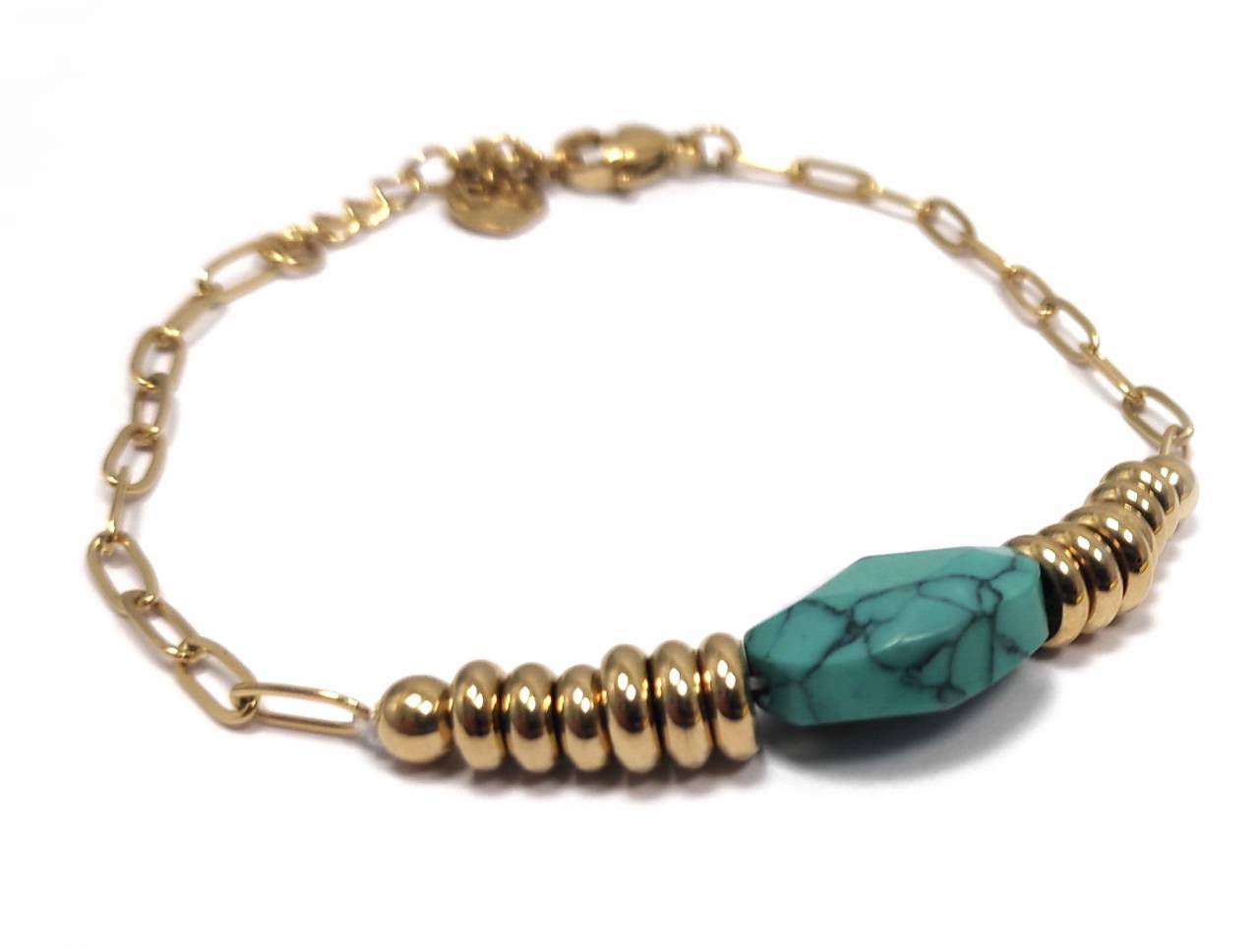 Βραχιόλι Πέτρα 316L, αλυσίδα με τυρκουάζ σε χρώμα Χρυσαφί, Μήκος 18cm