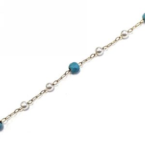Βραχιόλι Πέτρα ατσάλι 316L, αλυσίδα με τυρκουάζ και πέρλα σε χρώμα Χρυσαφί
