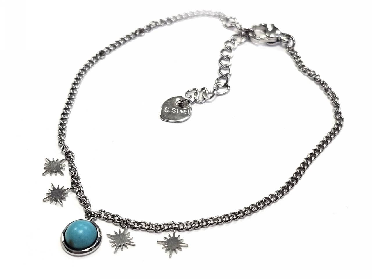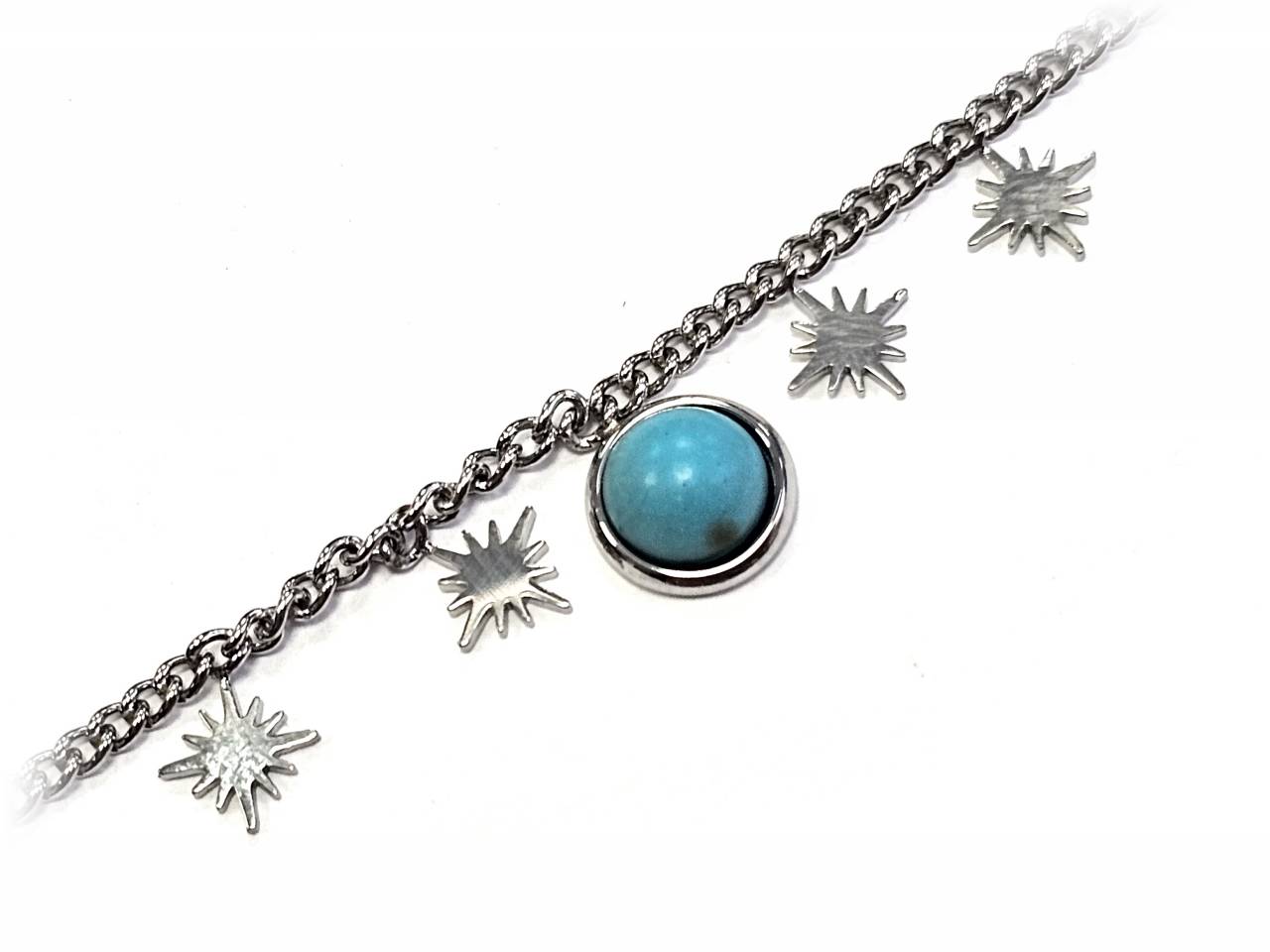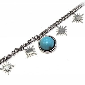Βραχιόλι Πέτρα ατσάλι 316L, αλυσίδα με τυρκουάζ σε χρώμα Ασημί