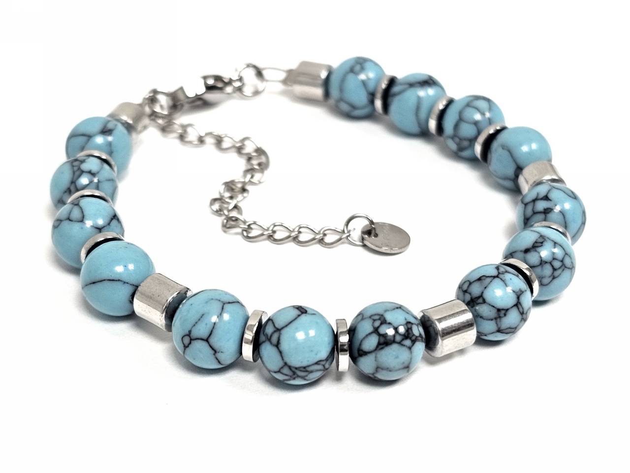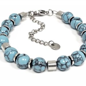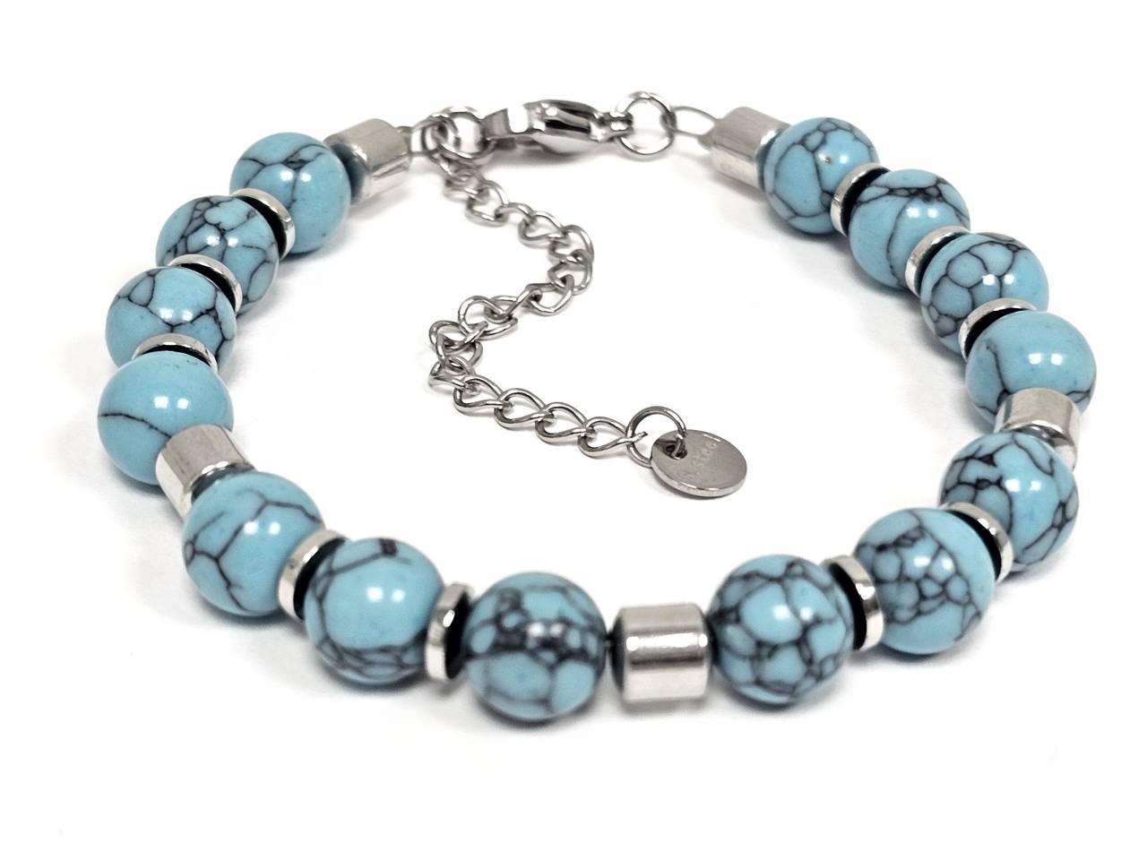 Βραχιόλι Πέτρα ατσάλι αλυσίδα με τυρκουάζ και στοιχεία από αιματίτη σε χρώμα Ασημί