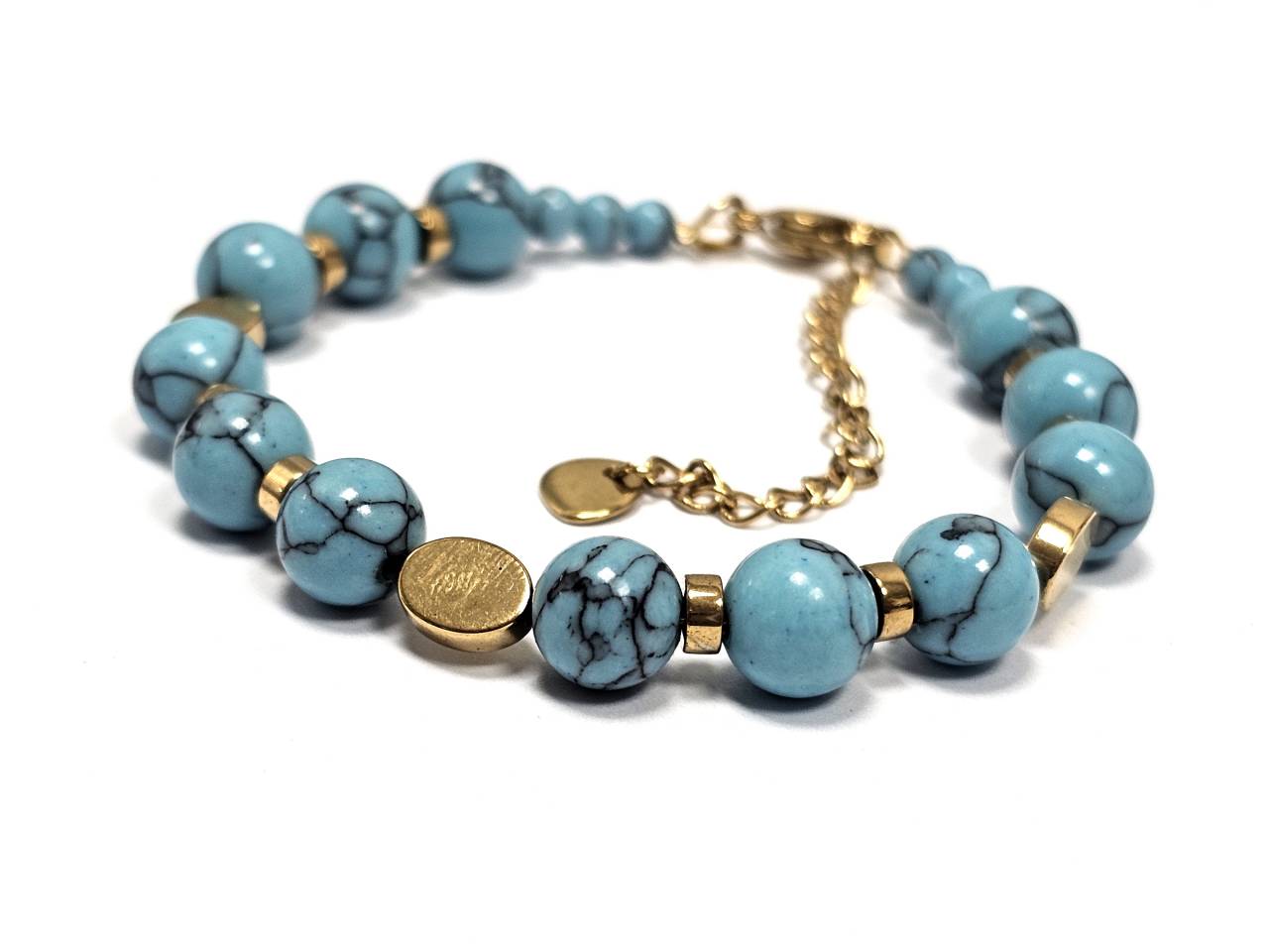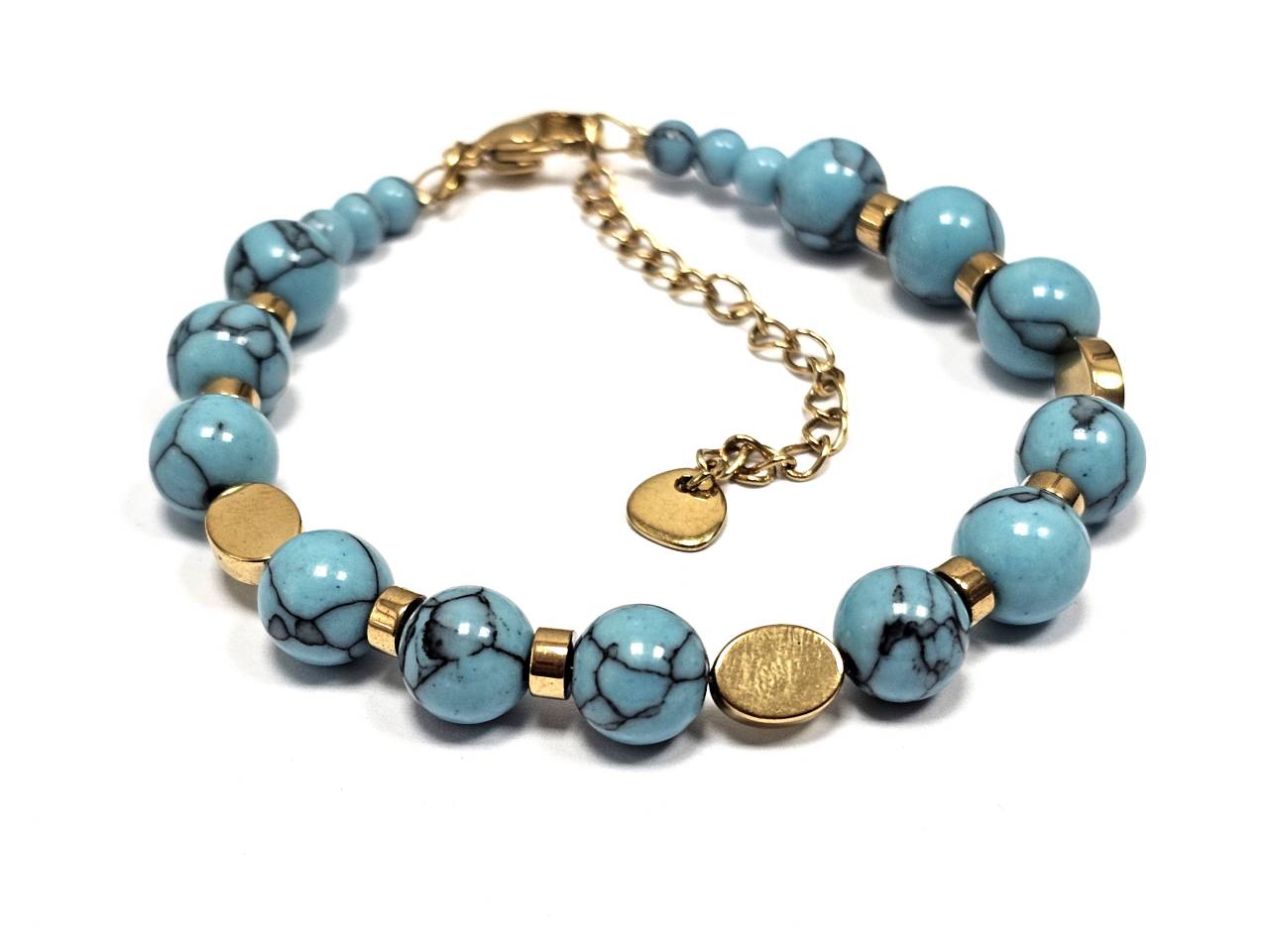 Βραχιόλι Πέτρα με τυρκουάζ και στοιχεία από αιματίτη σε χρώμα Χρυσαφί