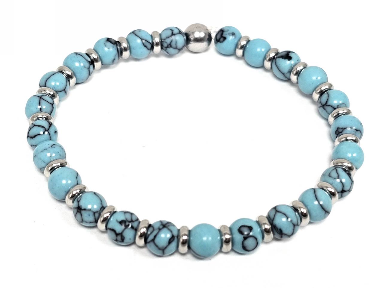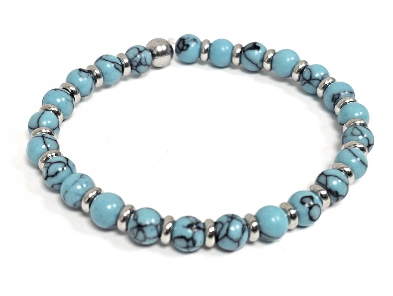 Βραχιόλι Πέτρα λάστιχο, 6# τυρκουάζ και ατσάλινα στοιχεία σε χρώμα Ασημί