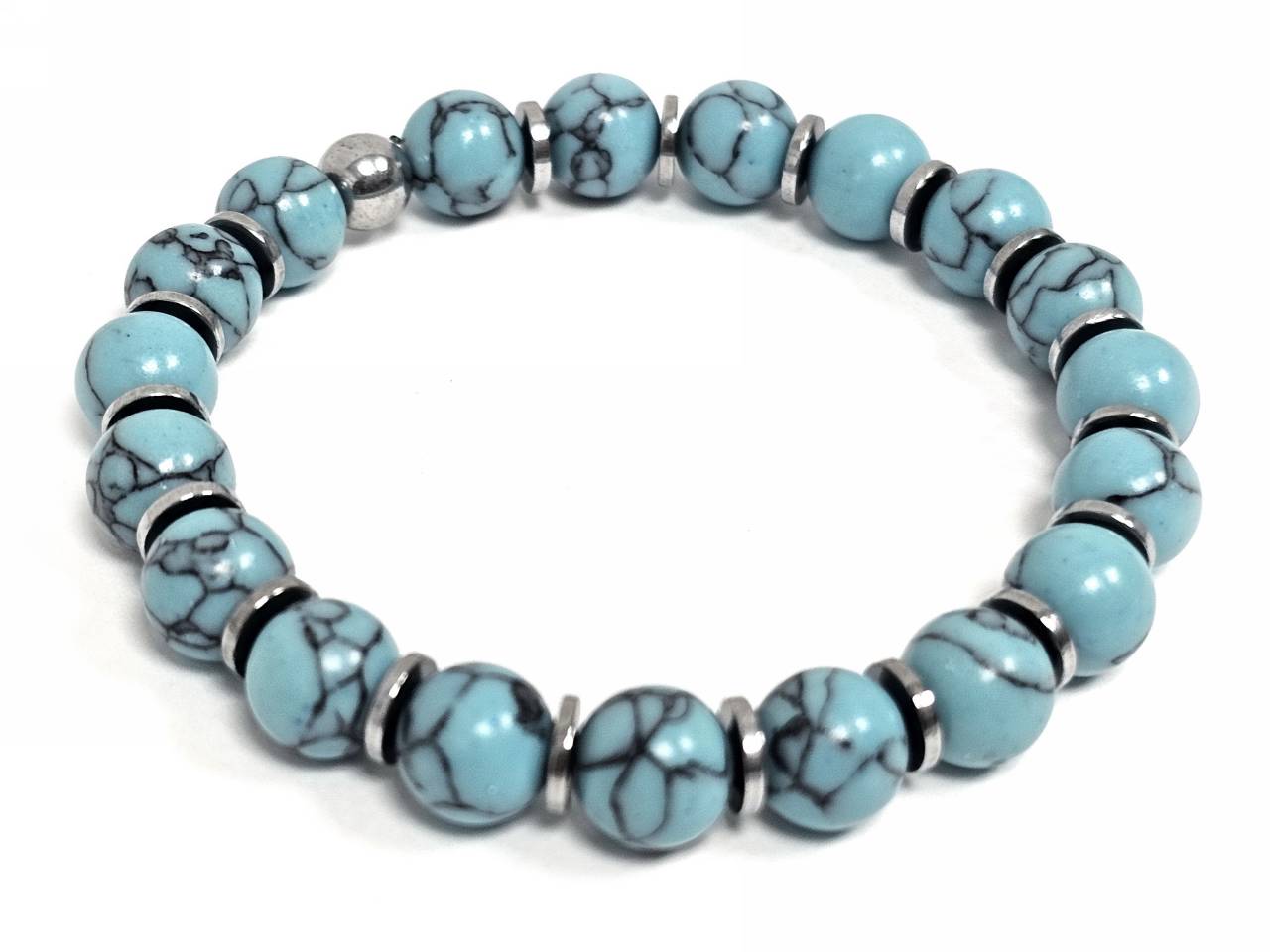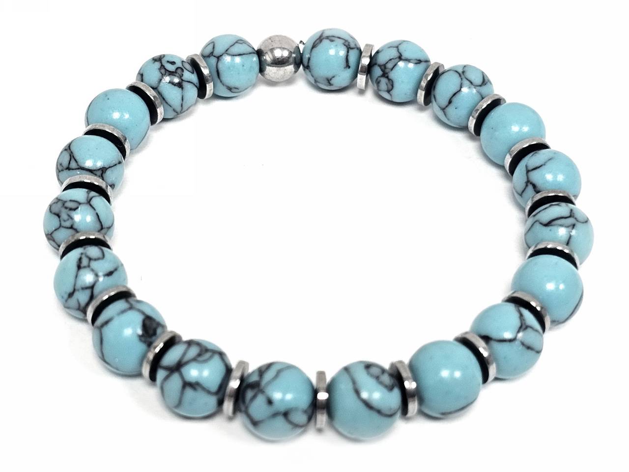 Βραχιόλι Πέτρα λάστιχο, 8# τυρκουάζ, και στοιχεία από αιματίτη σε χρώμα Ασημί